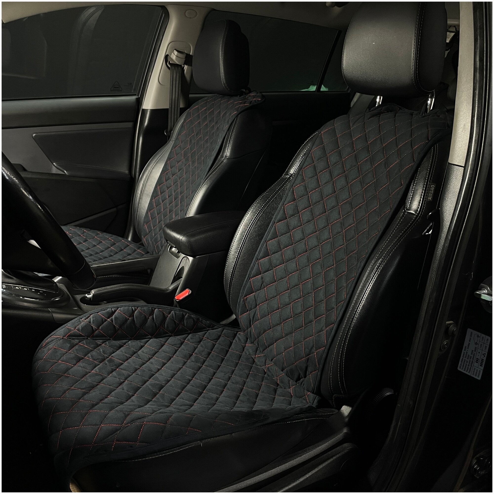 Накидки для Skoda Karoq (2017-2023) на передние сиденья RS, Алькантара, Черный / Строчка красная интересное: