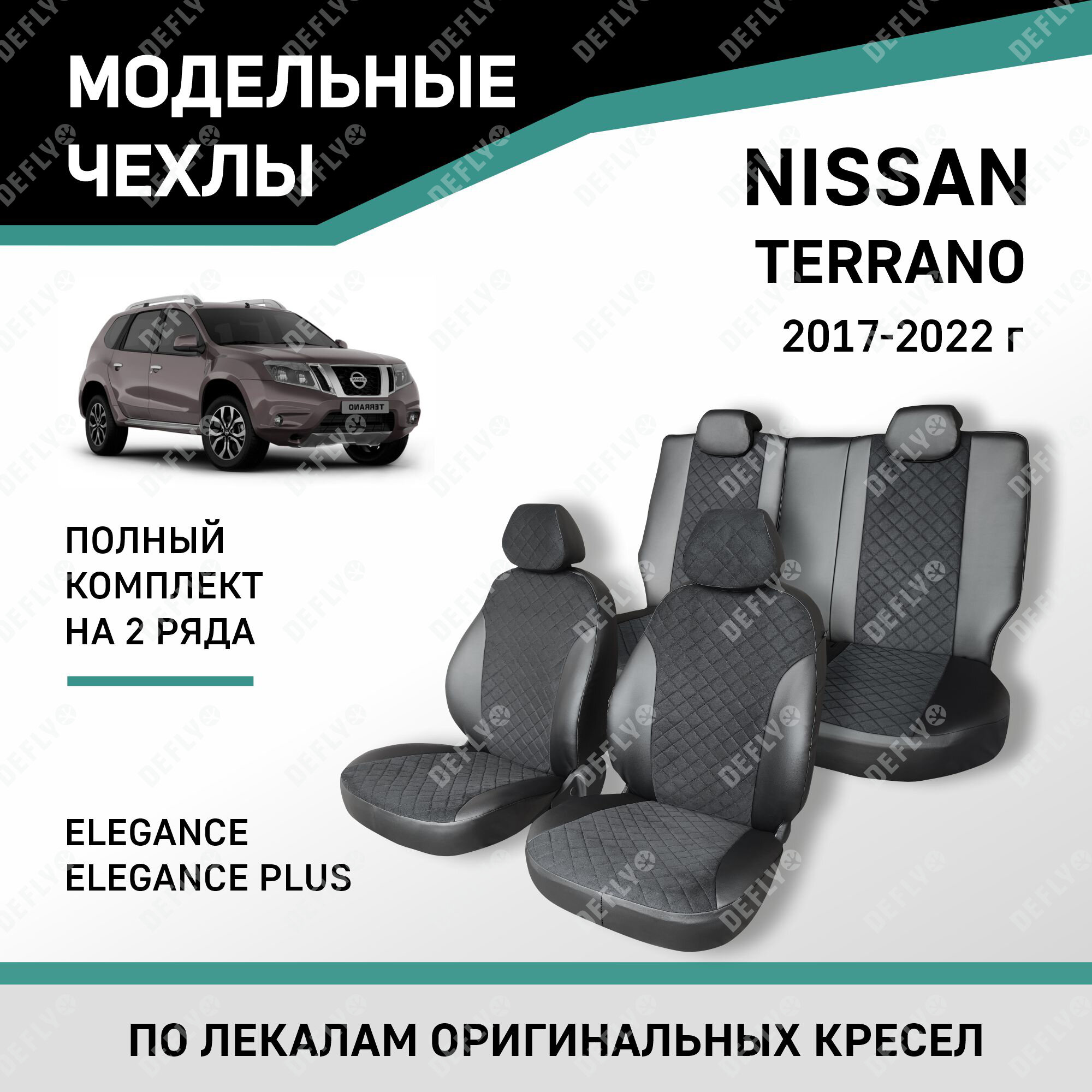 Купить Модельные чехлы на сиденья Defly Nissan Terrano 2017-2022 Elegance, Elegance Plus Экокожа и замша