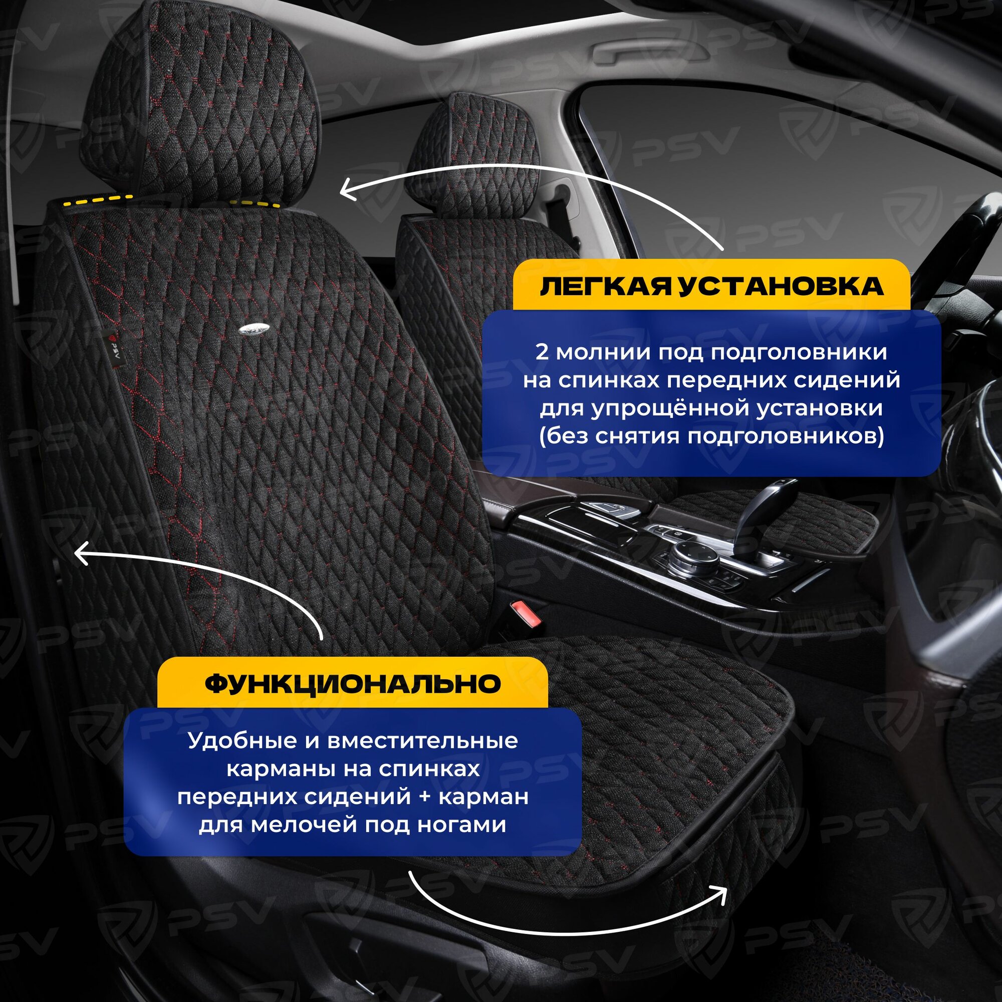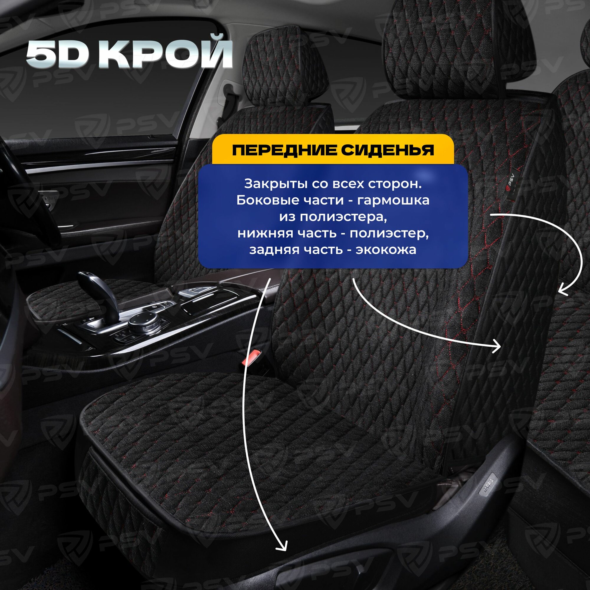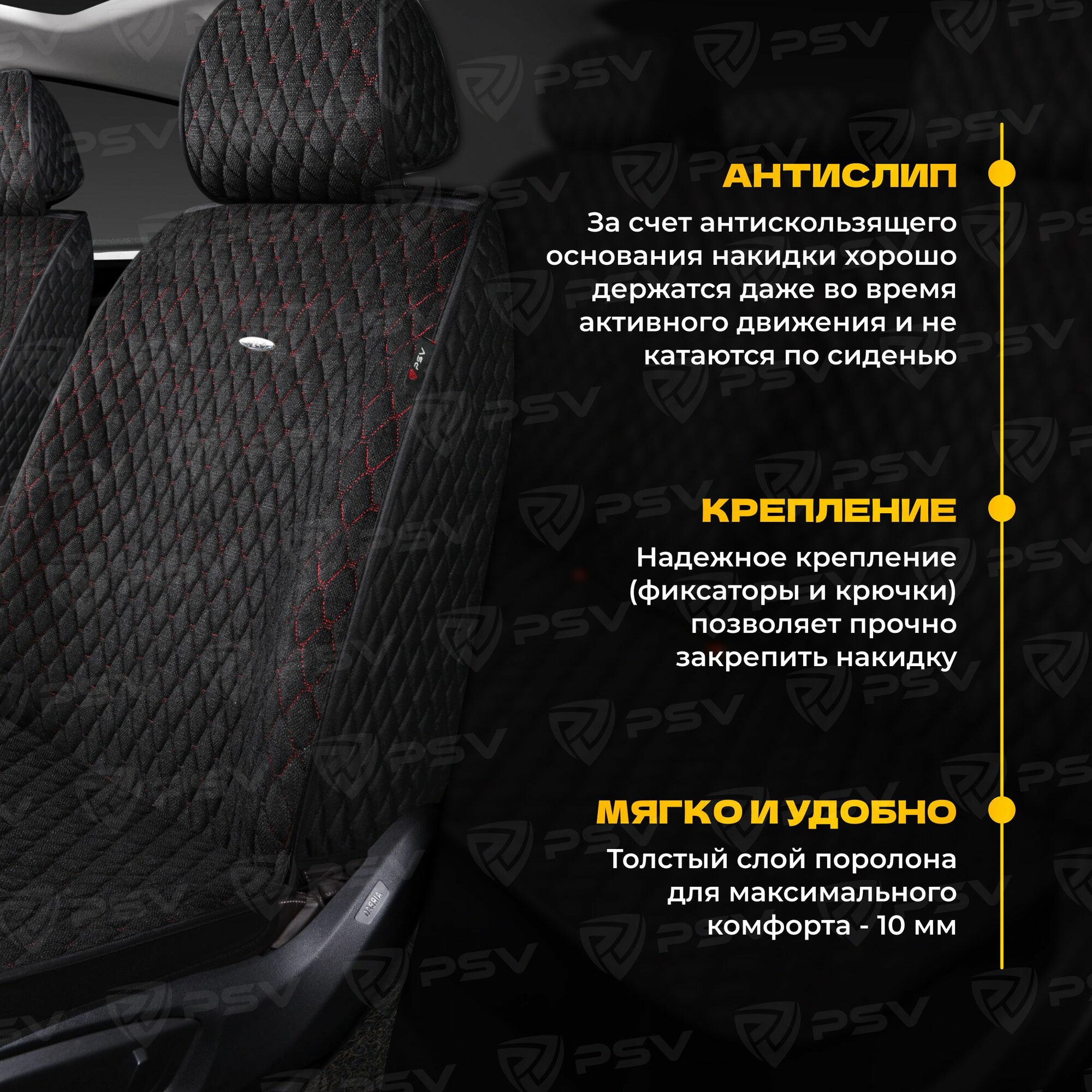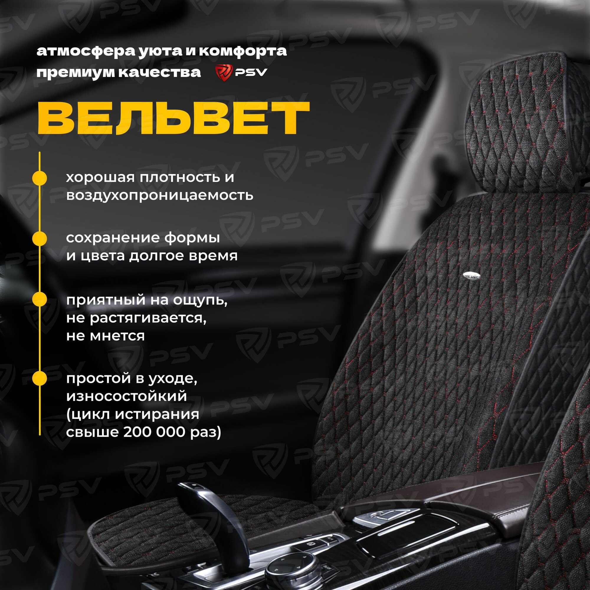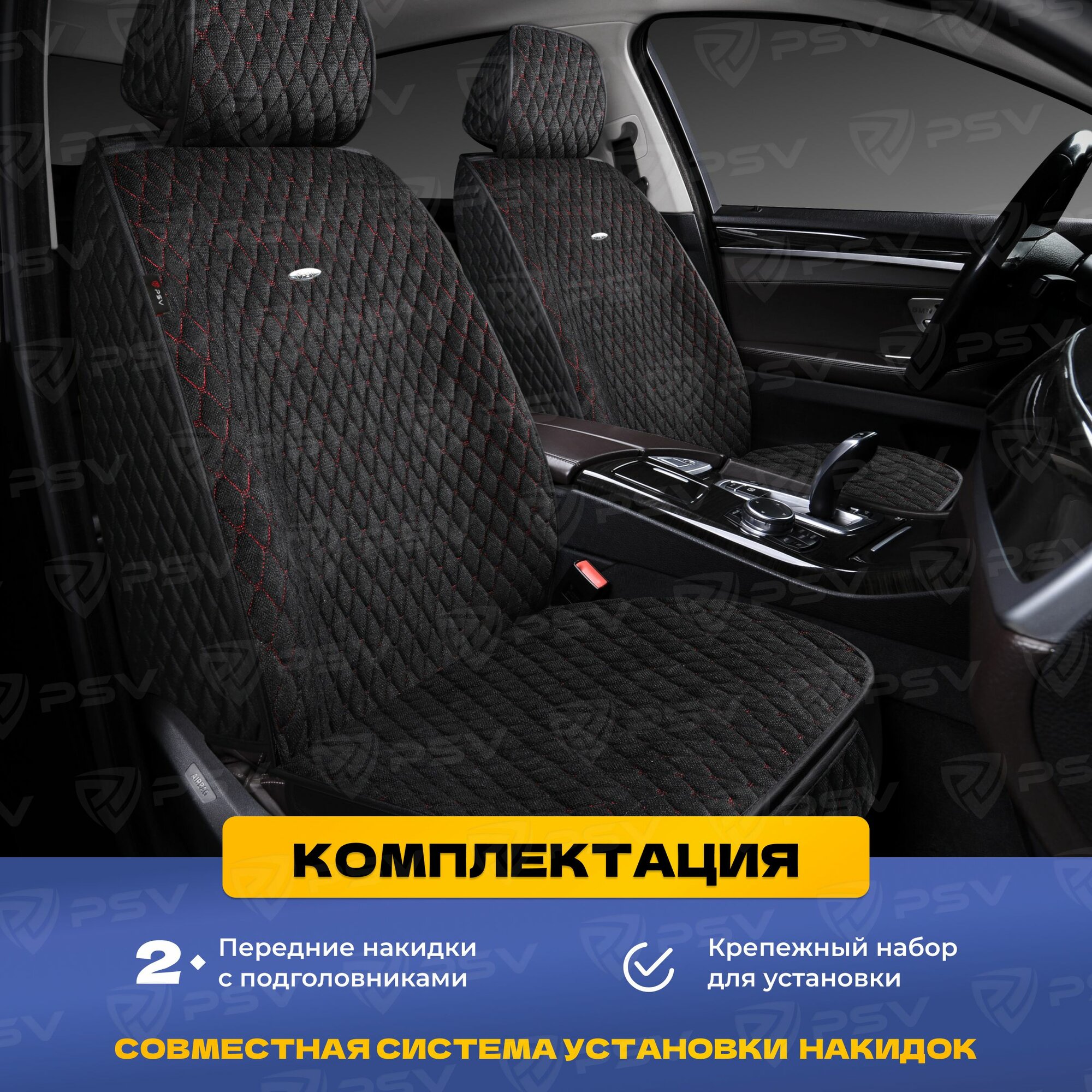 СохранитьНакидки в машину универсальные 5D PSV Velvet 2 FRONT (Черный/Отстрочка красная), на передние сиденья, вельвет интересное: