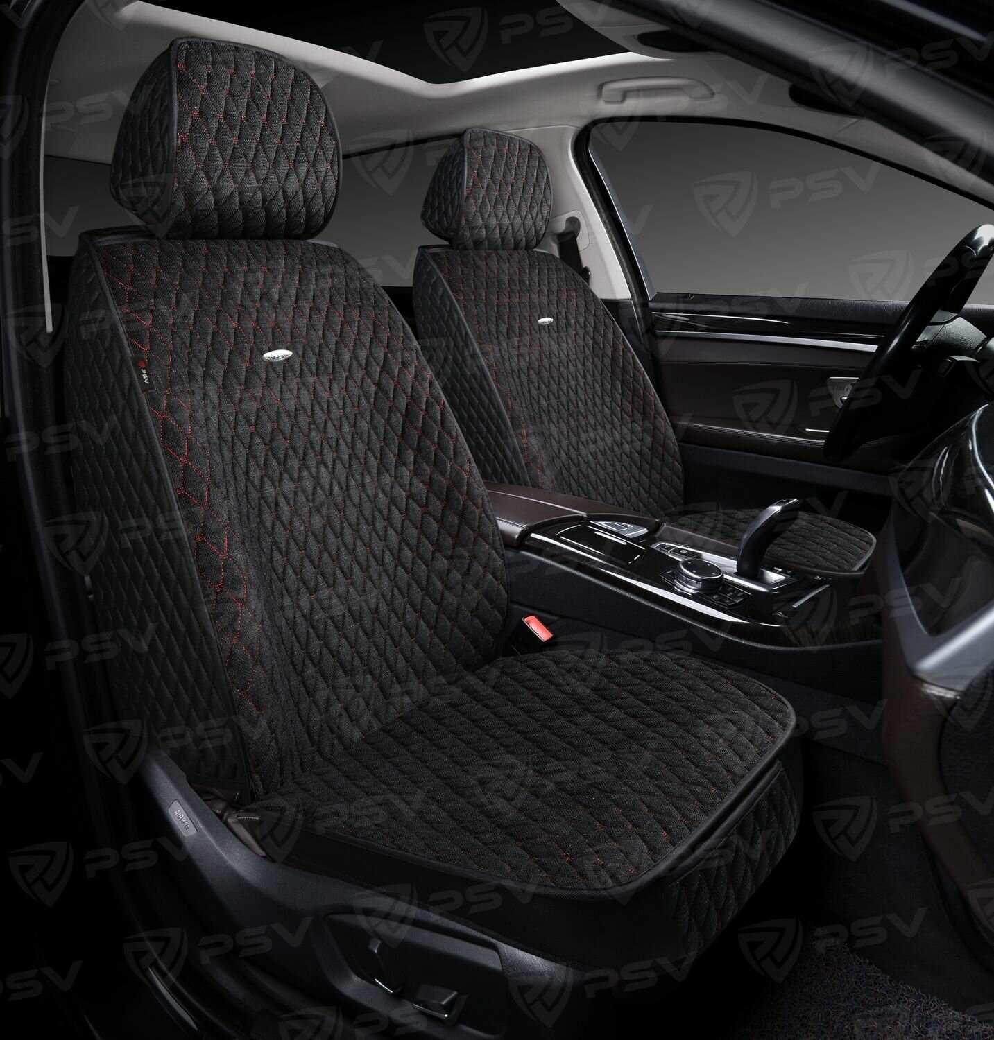 Купить Накидки в машину универсальные 5D PSV Velvet 2 FRONT (Черный/Отстрочка красная), на передние сиденья, вельвет