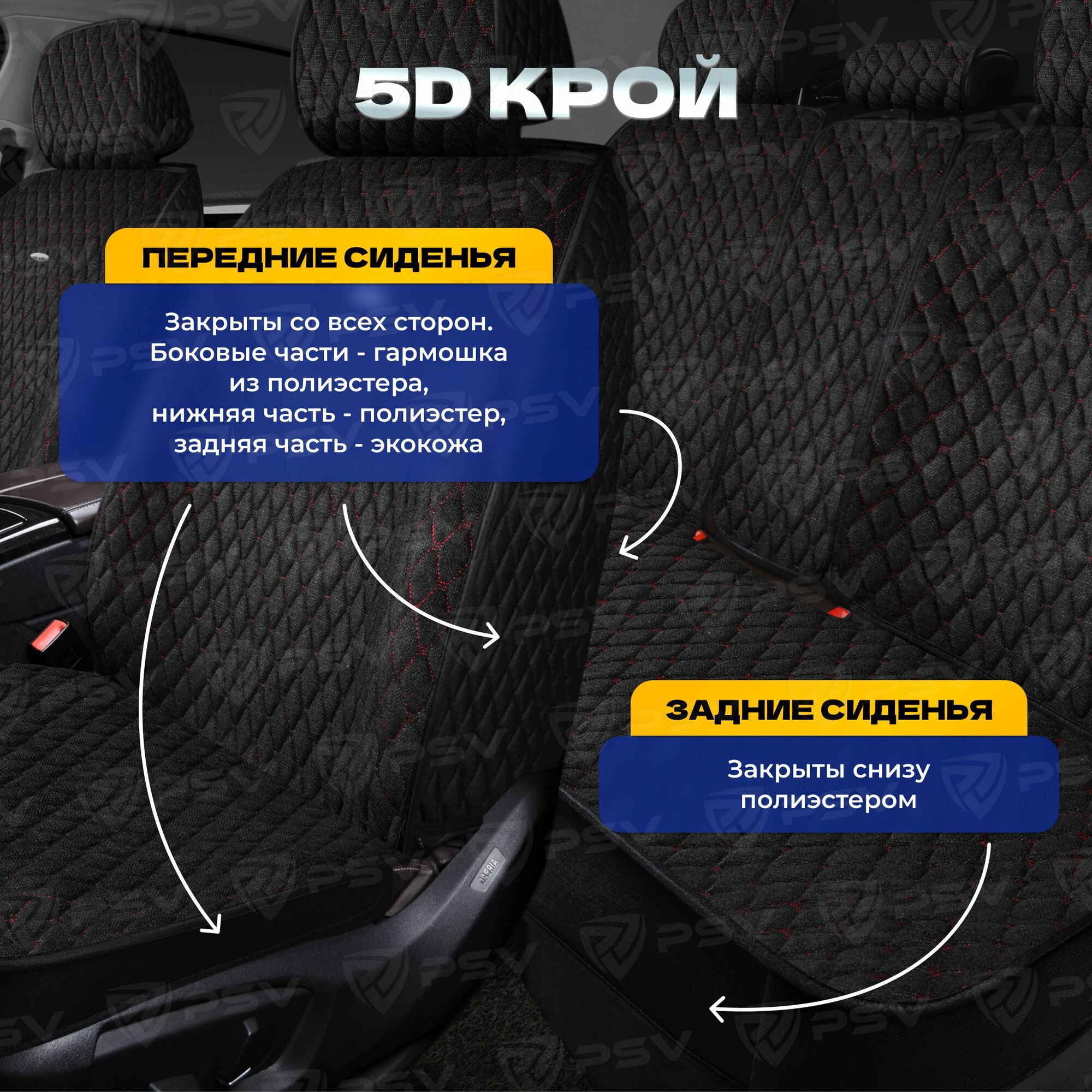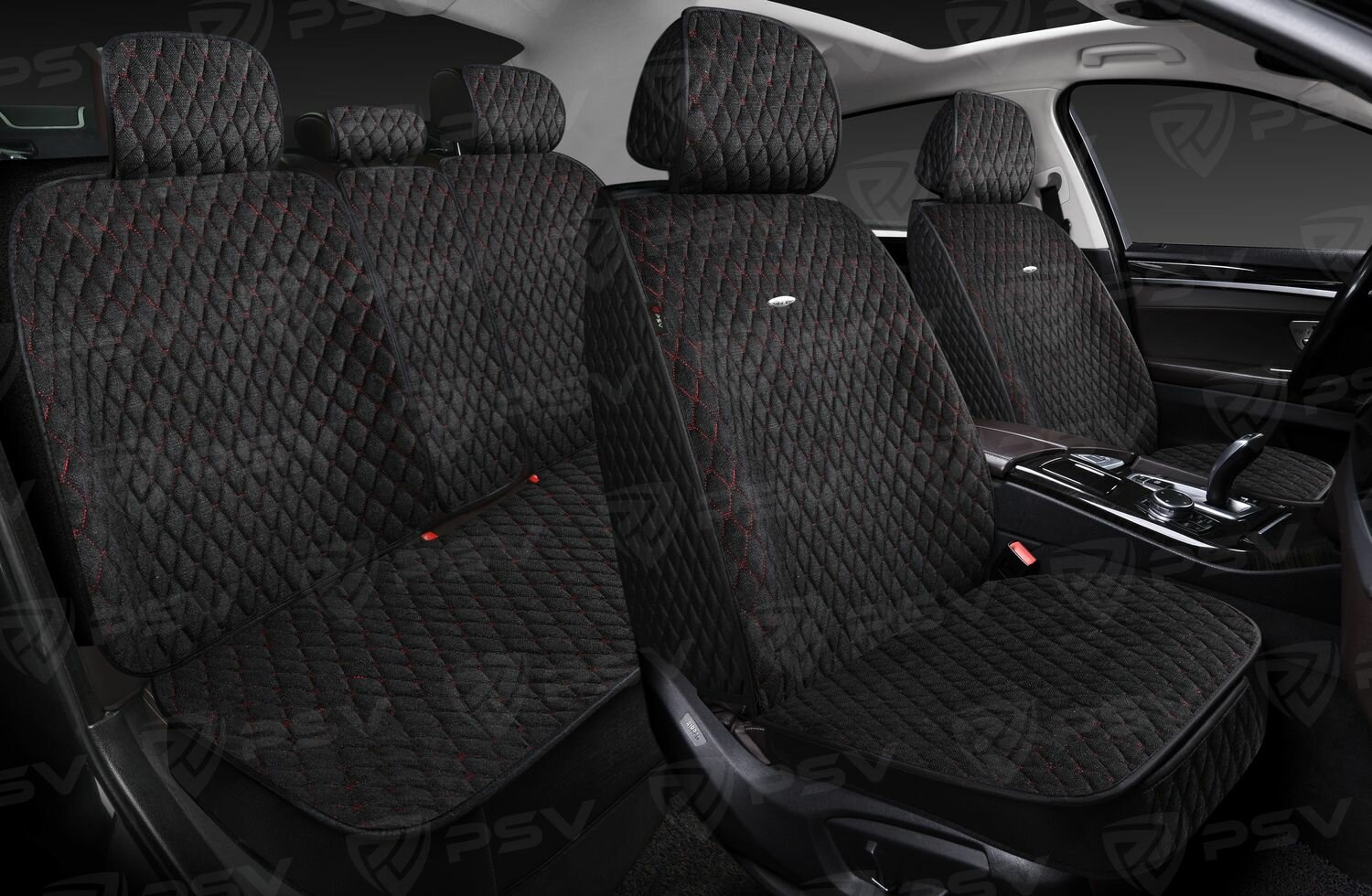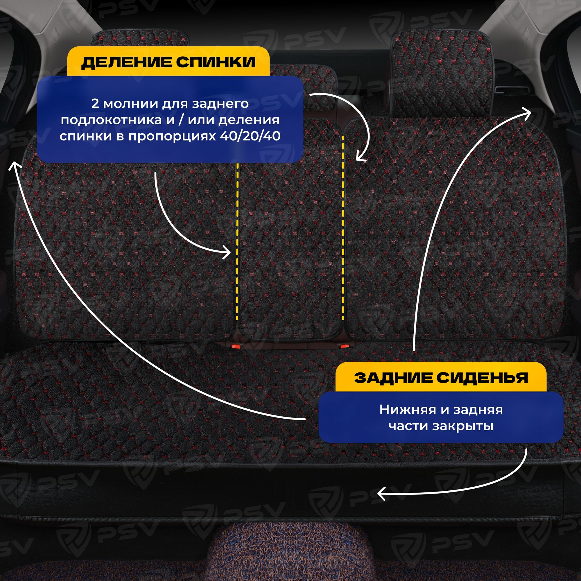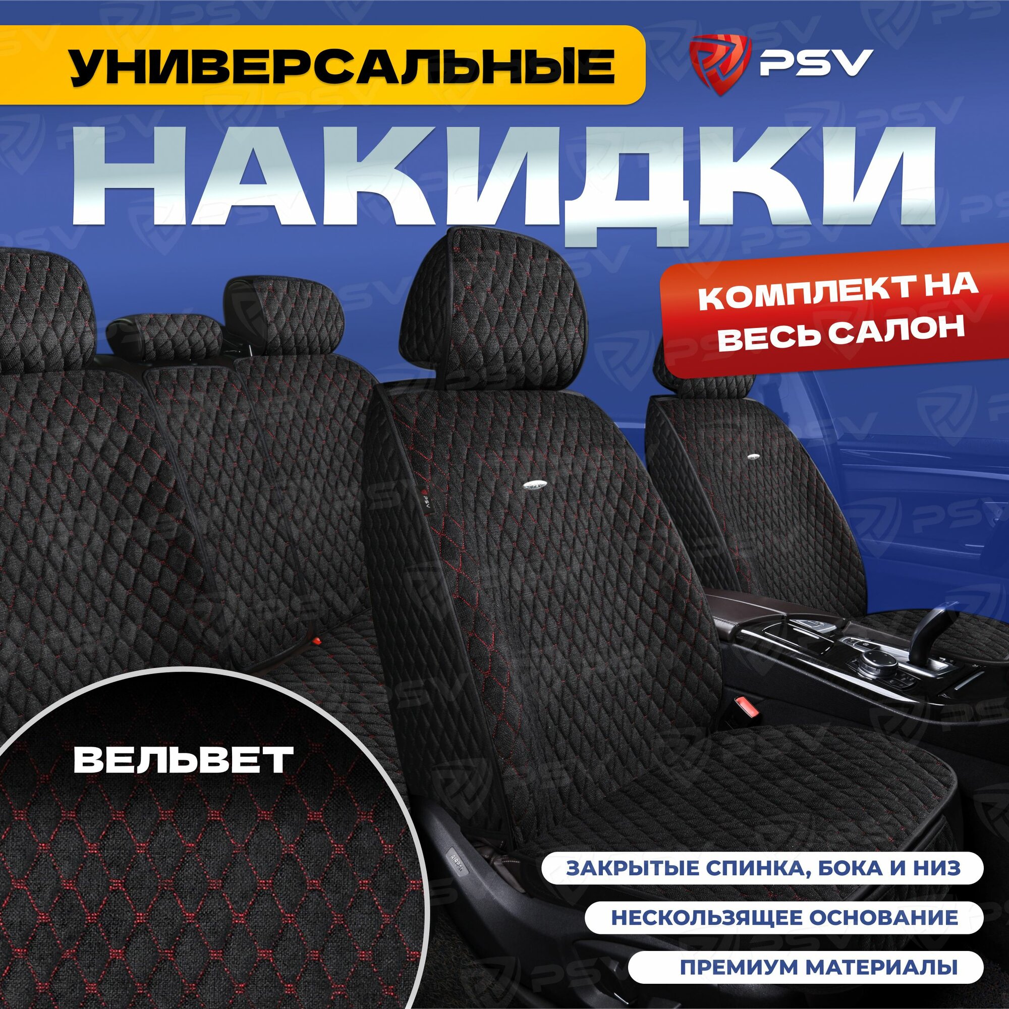 Купить Накидки в машину универсальные 5D PSV Velvet (Черный/Отстрочка Красная), комплект на весь салон, вельвет