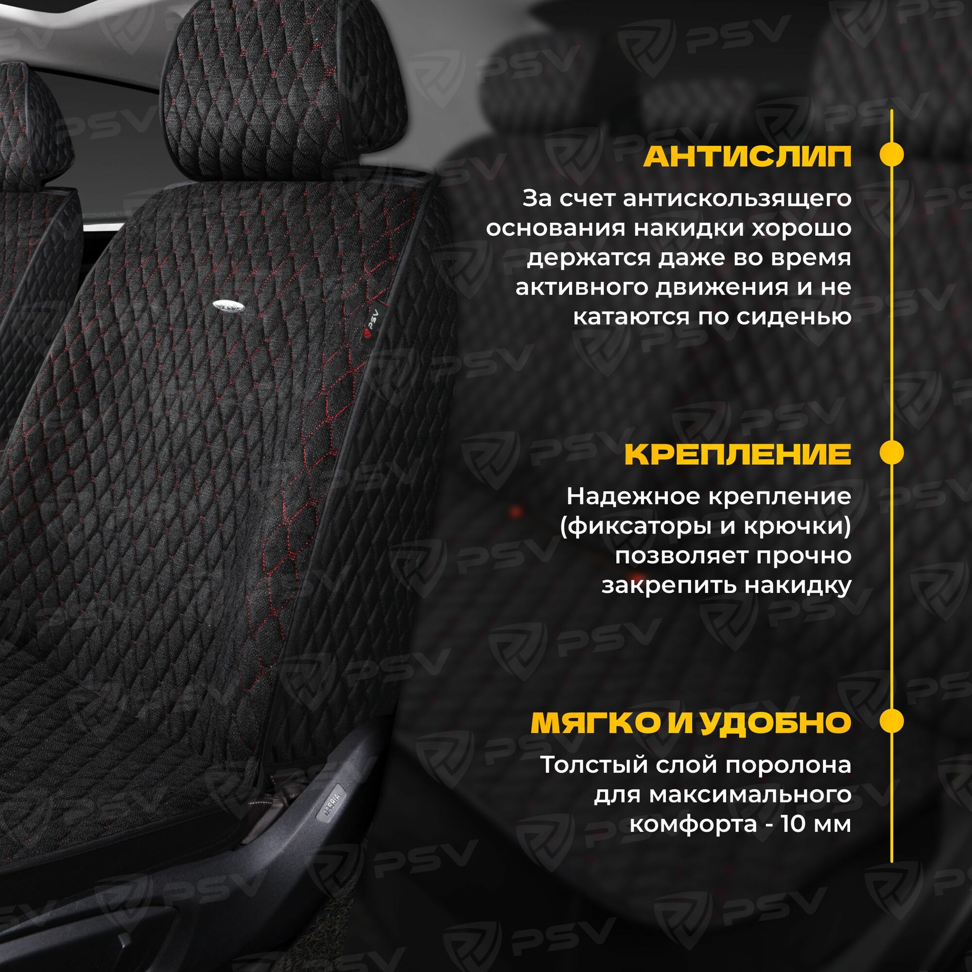 Накидки в машину универсальные 5D PSV Velvet 2 FRONT (Черный/Отстрочка красная), на передние сиденья, вельвет