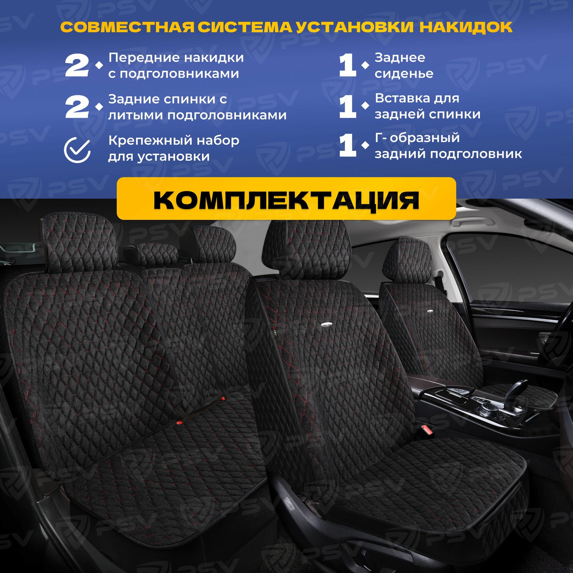 СохранитьНакидки в машину универсальные 5D PSV Velvet (Черный/Отстрочка Красная), комплект на весь салон, вельвет интересное: