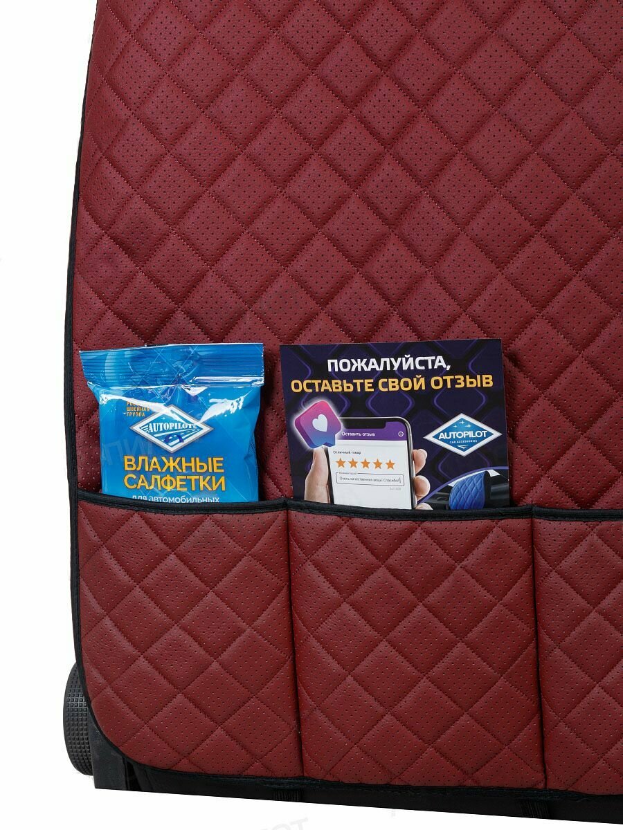 Накидка защитная на спинку автомобильного сиденья (органайзер) на Mitsubishi Montero II (2000-2006), Экокожа, Бордовый интересное: