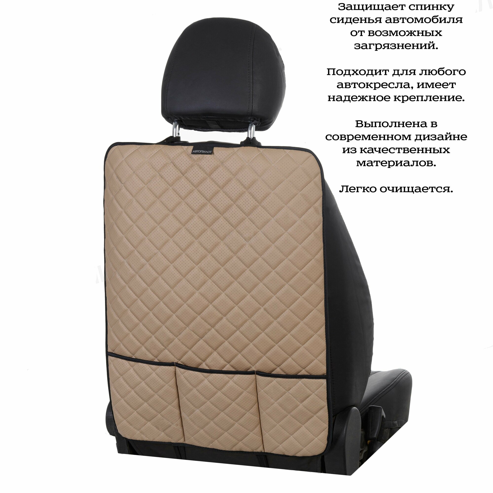Накидка защитная на спинку автомобильного сиденья (органайзер) на Kia Soul II (2013-2023), Экокожа, Темно-Бежевый интересное: