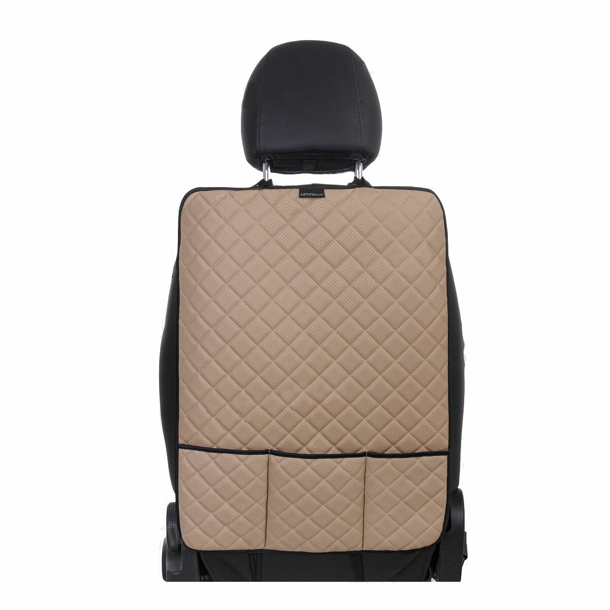 Купить Накидка защитная на спинку автомобильного сиденья (органайзер) на Kia Soul II (2013-2023), Экокожа, Темно-Бежевый