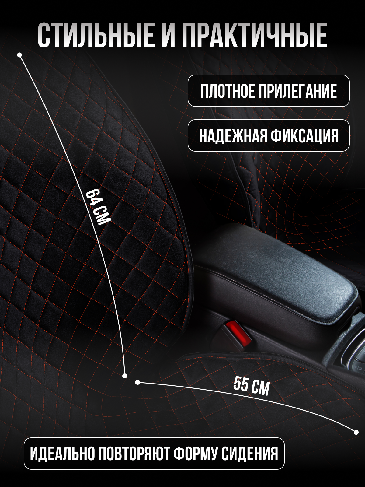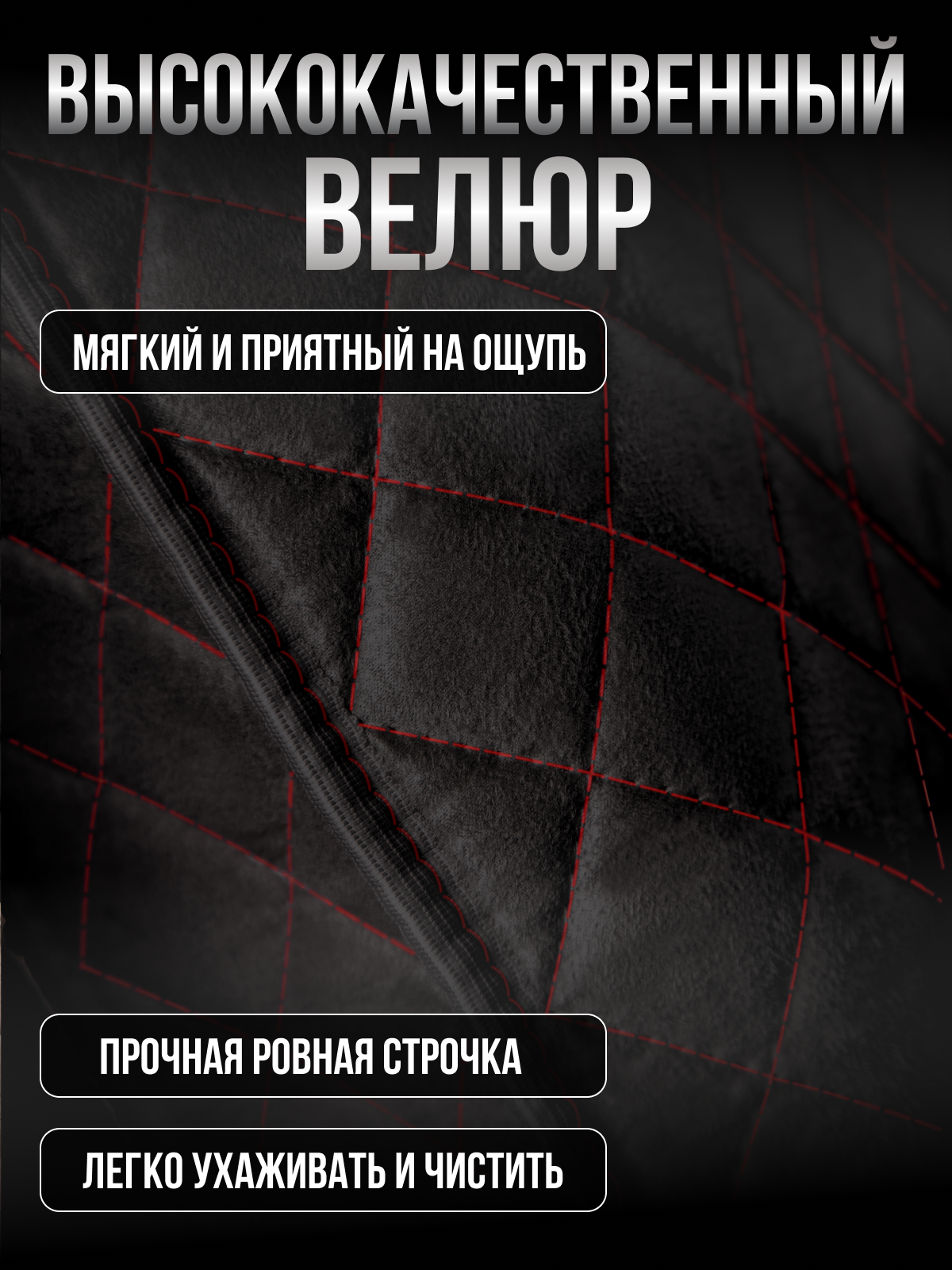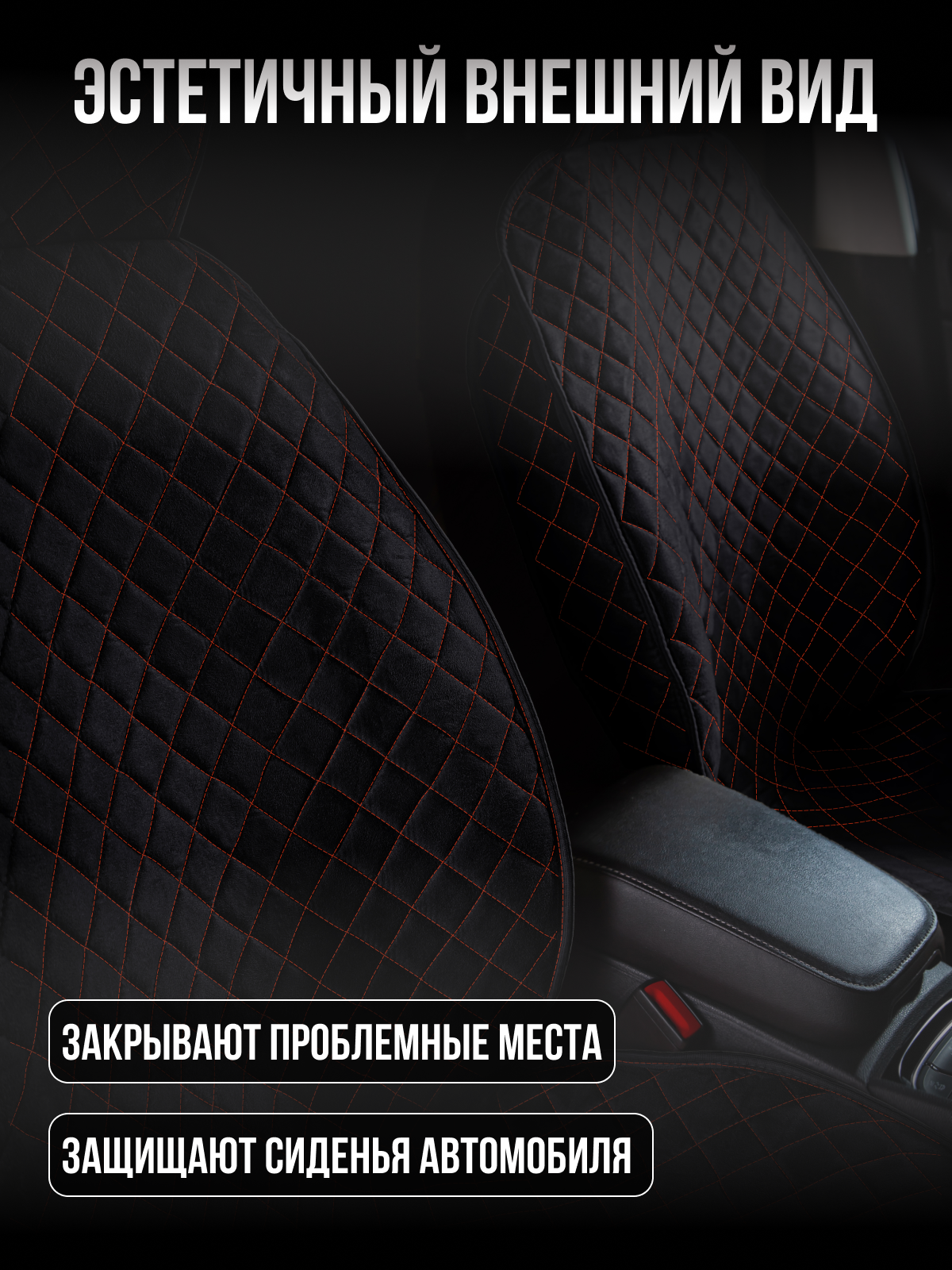 Купить Накидка "Велюр" 2шт. на переднее сиденье, стандарт Чёрная с красной нитью для Hummer H3