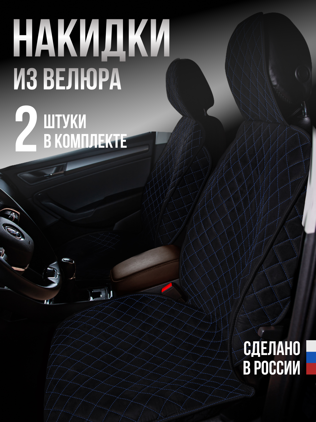 Купить Накидка "Велюр" 2шт. на переднее сиденье, стандарт Чёрная с синей нитью для Hummer H3
