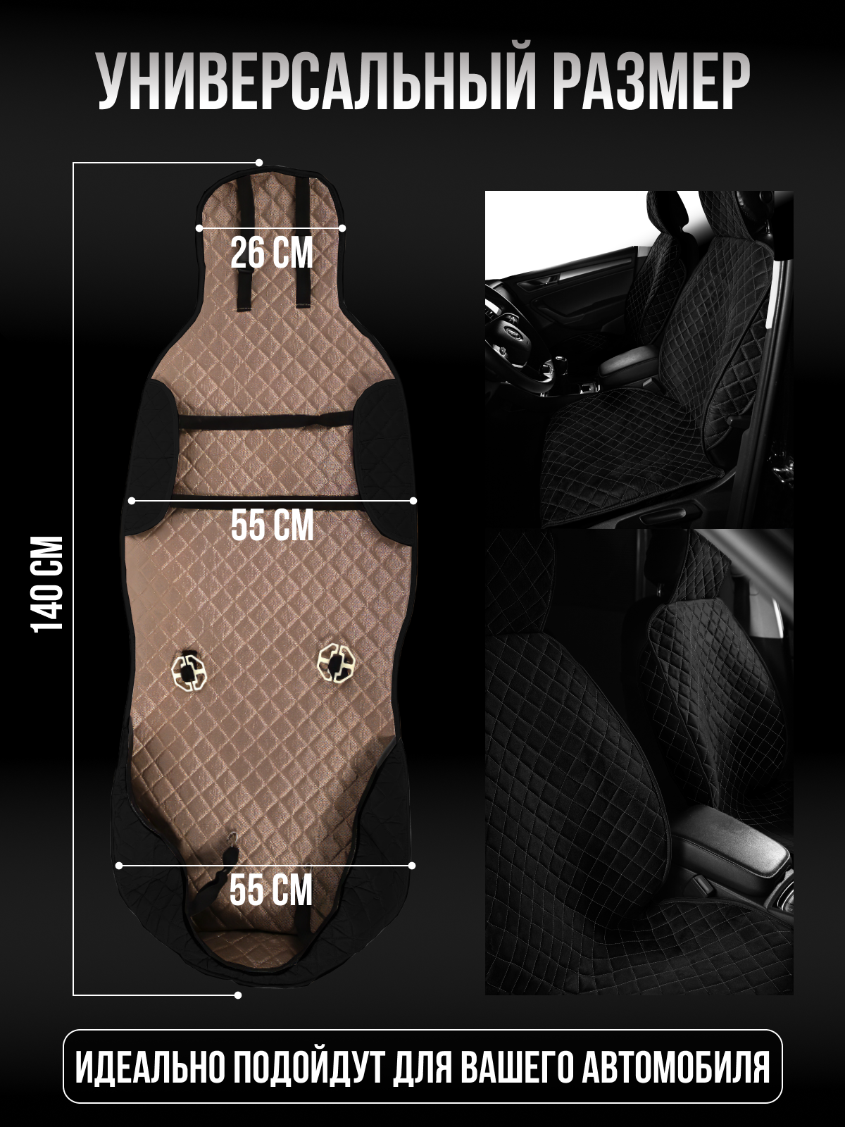 Накидка "Велюр" 2шт. на переднее сиденье, стандарт Чёрная с черной нитью для Киа К5 (Kia K5)