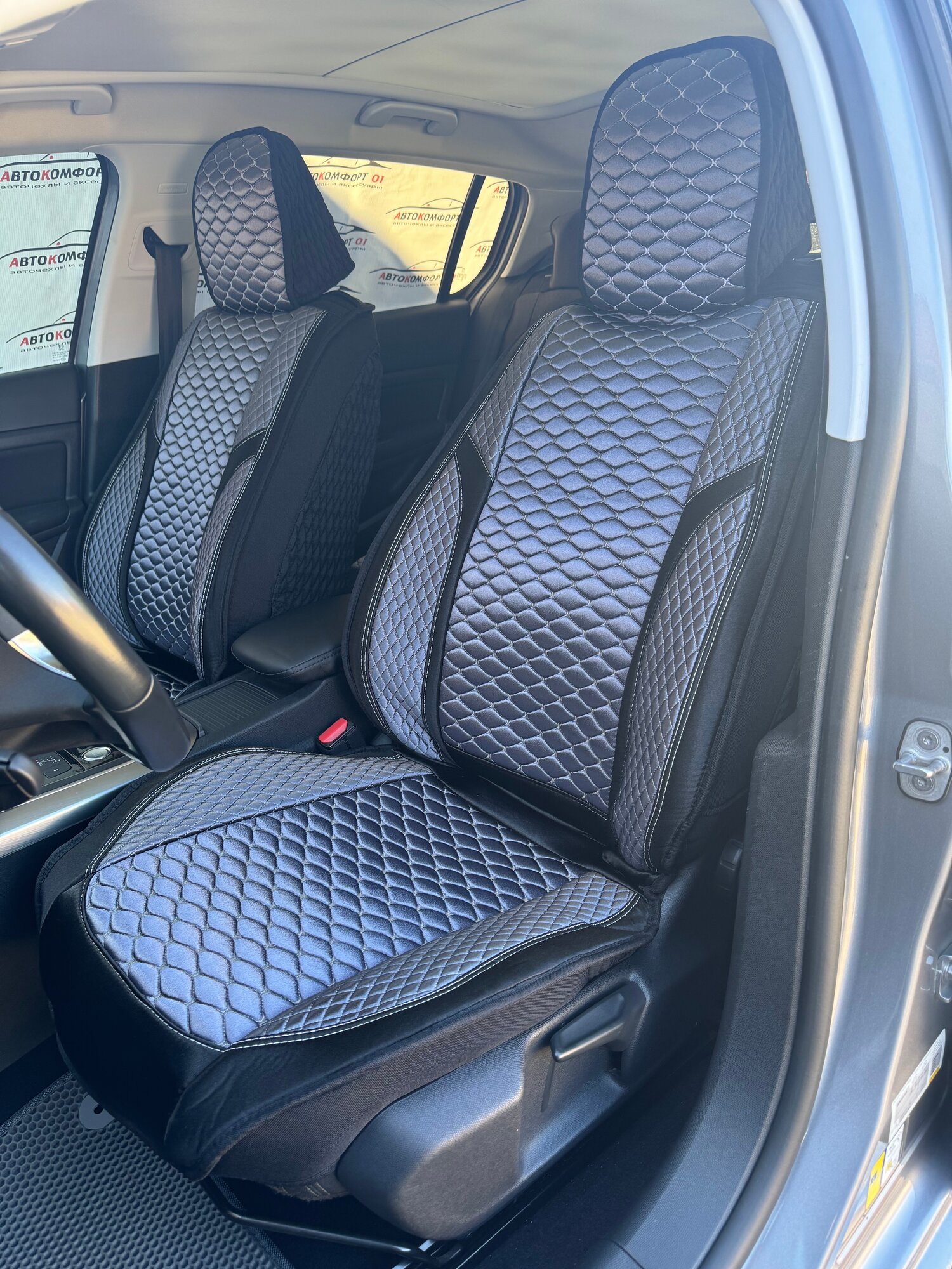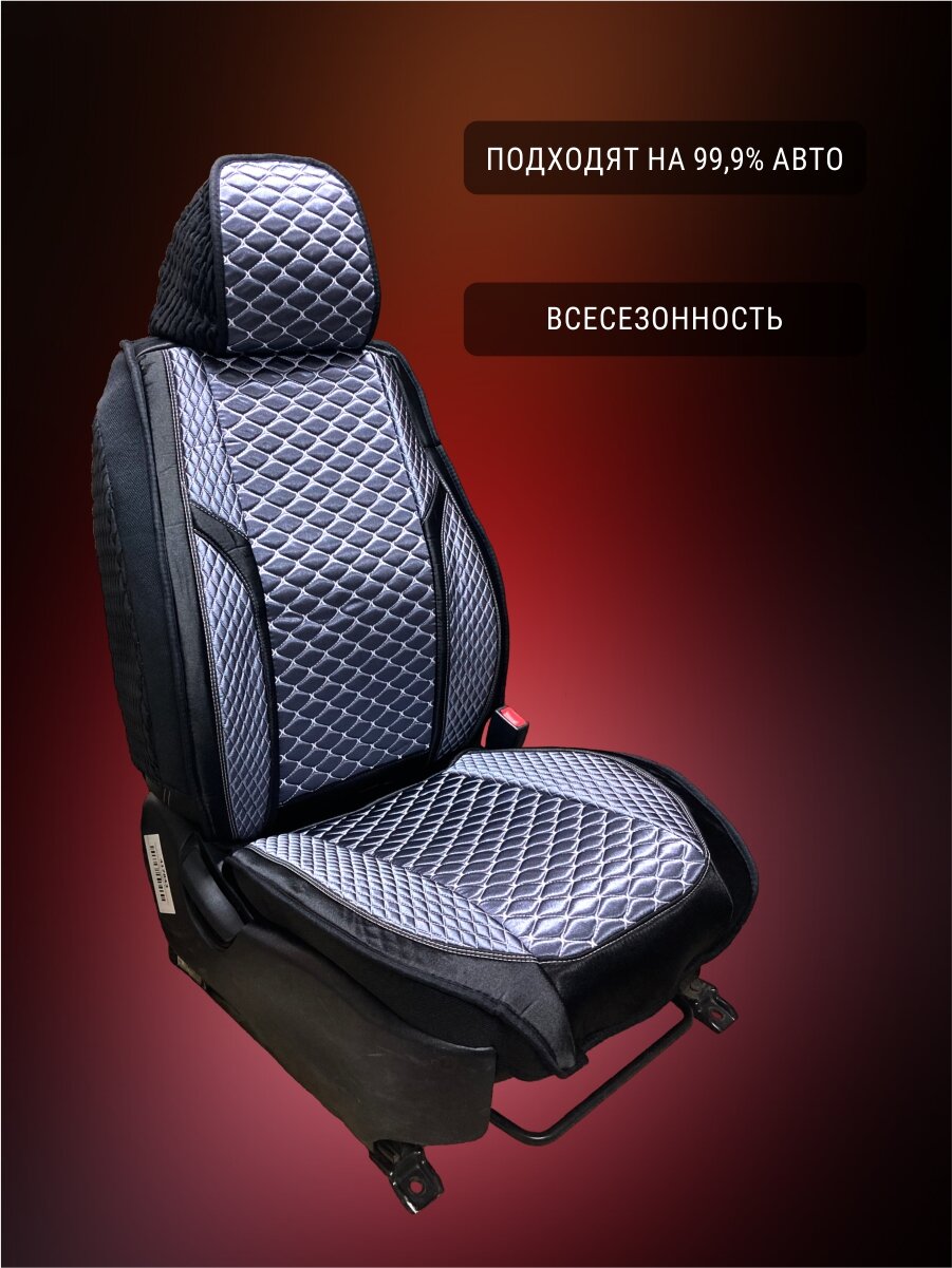 Комплект каркасных чехлов 5D CarFashion Consul Plus, чёрные, отстрочка серая