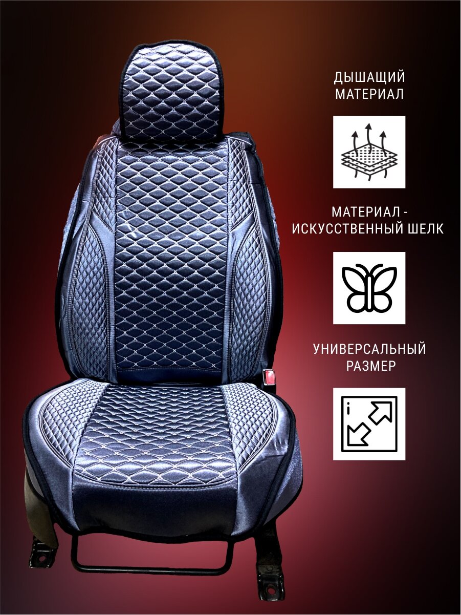 Автомобильные накидки универсальные Китайский Шелк Холодок. Комплект салон 5 мест. Черные, черная строчка
