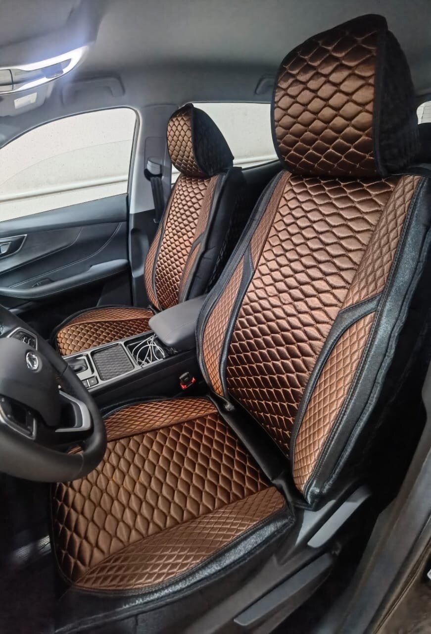 Купить Автомобильные накидки универсальные Китайский Шелк Холодок. Комплект салон 5 мест. Коричневый с коричневой строчкой.