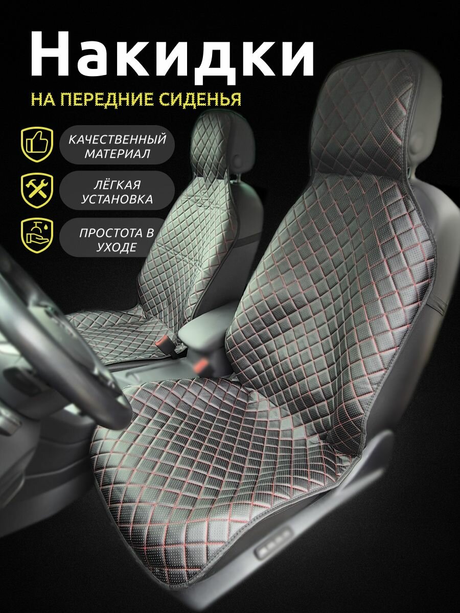 Купить Накидки для Киа К900 (2018 - 2022) седан / Kia K900 на передние сиденья, ромб, Экокожа, Черный с красной строчкой