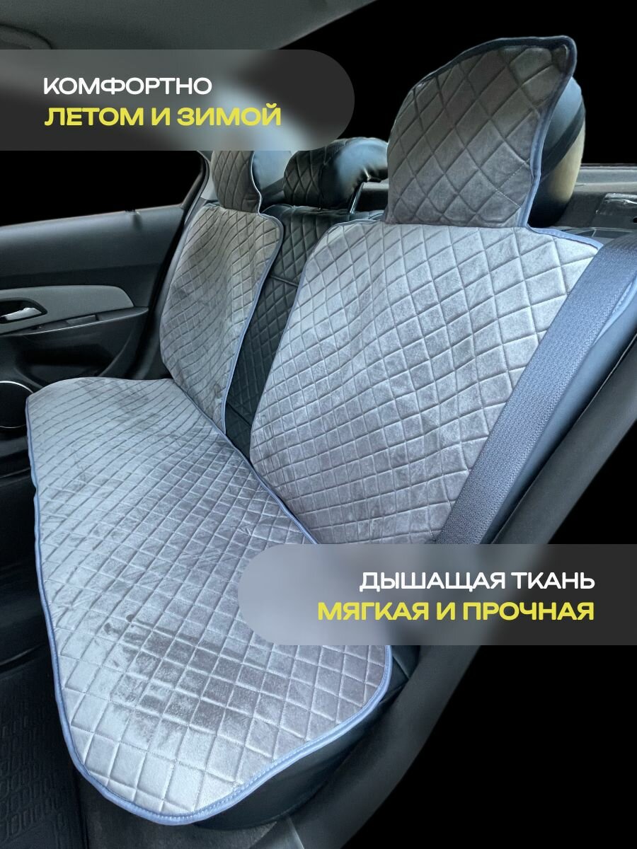 Купить Накидки для Киа К900 (2018 - 2022) седан / Kia K900 на весь салон с подголовниками, ромб, велюр, серый