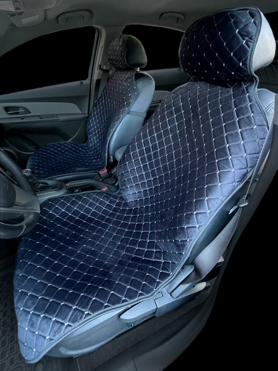 Накидки для Киа К900 (2018 - 2022) седан / Kia K900 на весь салон с подголовниками, ромб, велюр, черный с синим кантом