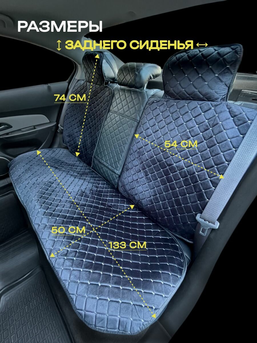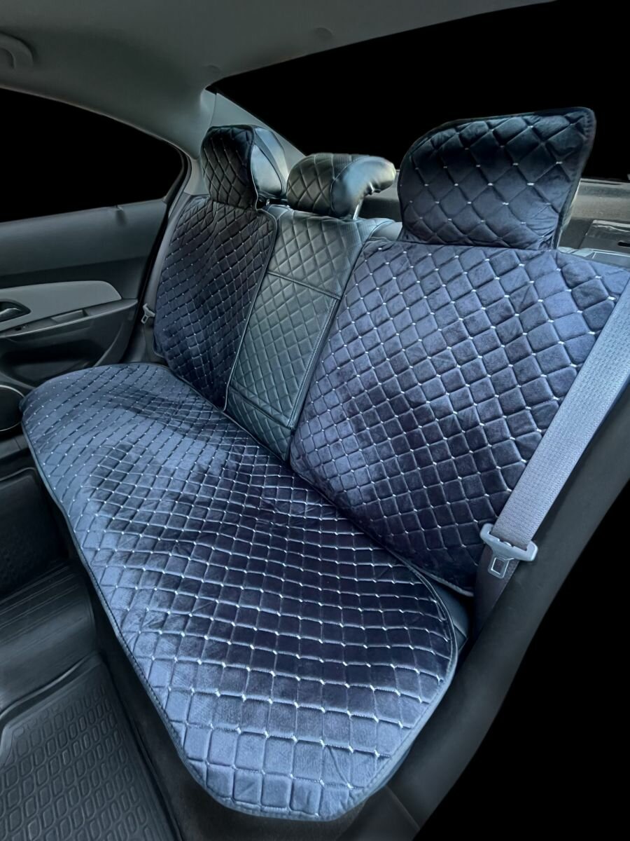 Купить Накидки для Киа К900 (2018 - 2022) седан / Kia K900 на весь салон с подголовниками, ромб, велюр, черный с серой строчкой