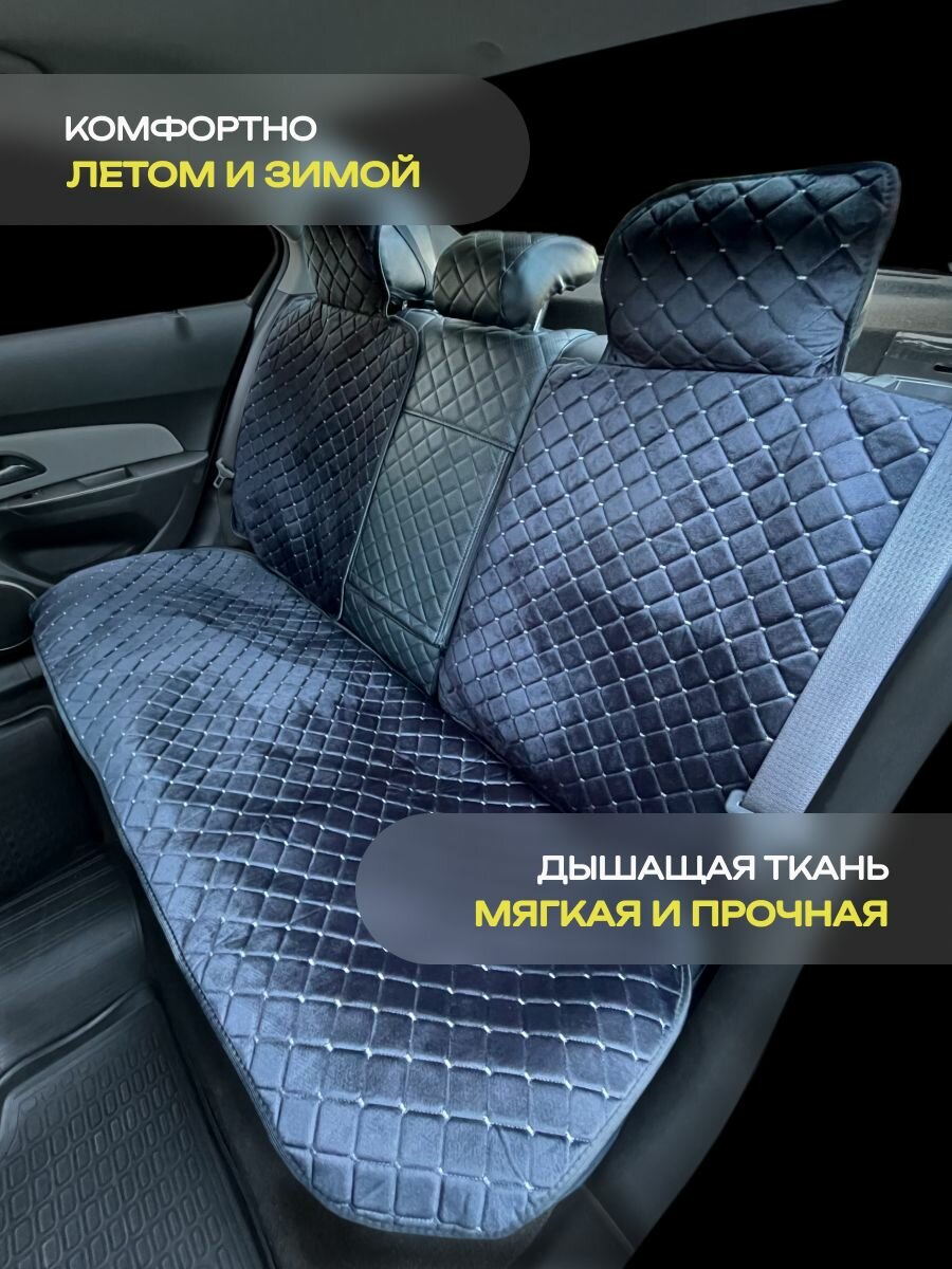 Накидки для Киа К900 (2018 - 2022) седан / Kia K900 на весь салон с подголовниками, ромб, велюр, серый