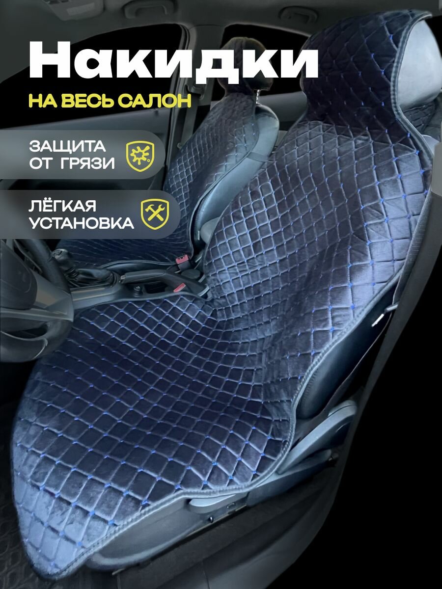 СохранитьНакидки для Киа К900 (2018 - 2022) седан / Kia K900 на весь салон с подголовниками, ромб, велюр, черный с синей строчкой интересное: