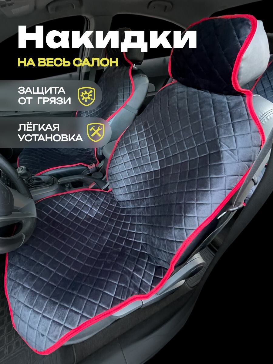 СохранитьНакидки для Киа К900 (2018 - 2022) седан / Kia K900 на весь салон с подголовниками, ромб, велюр, черный с красным кантом интересное:
