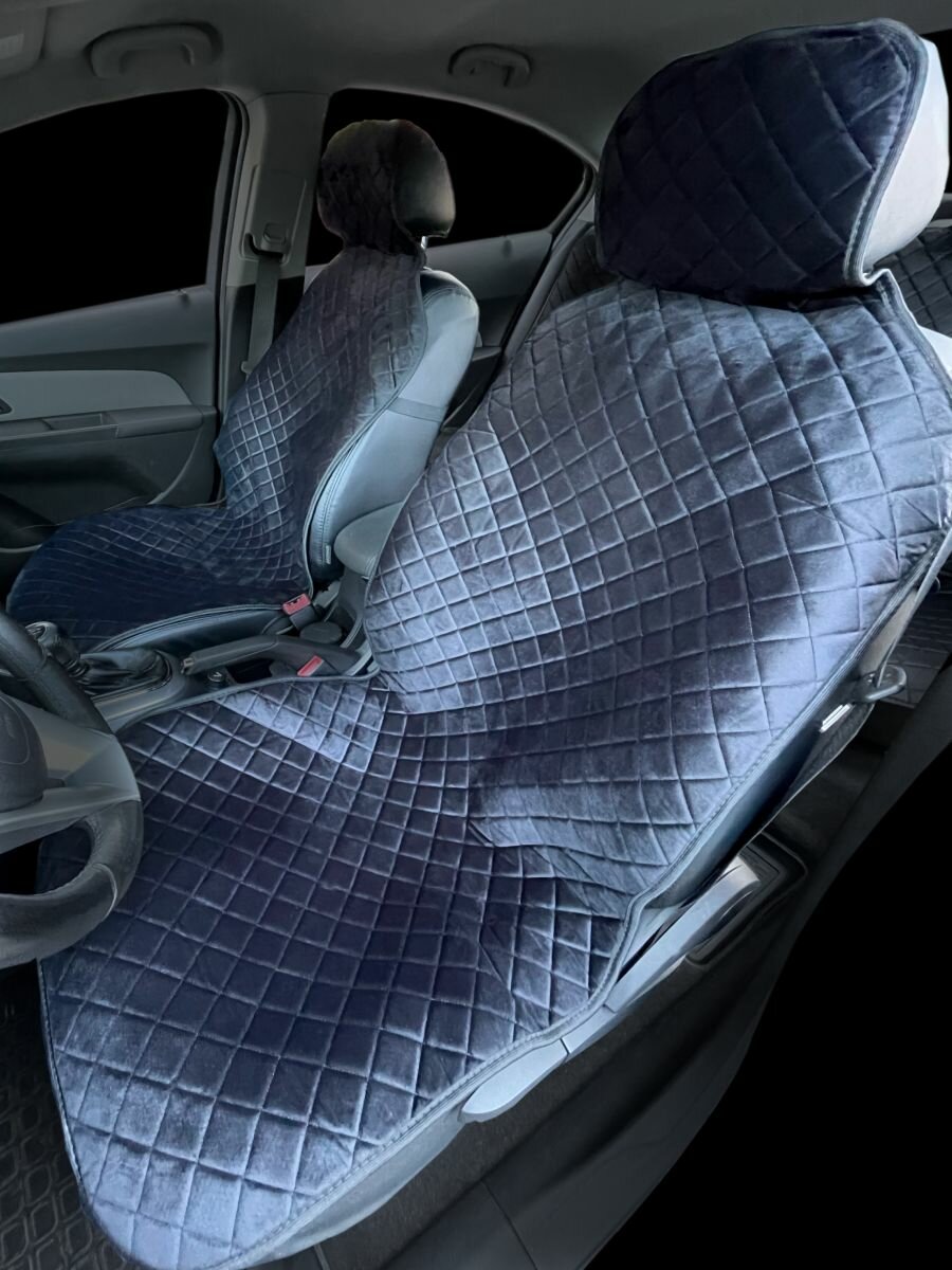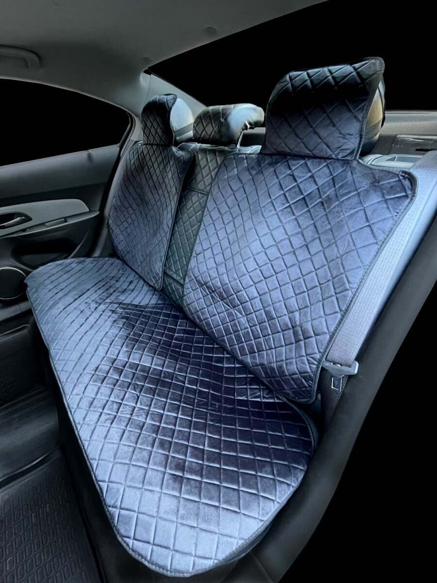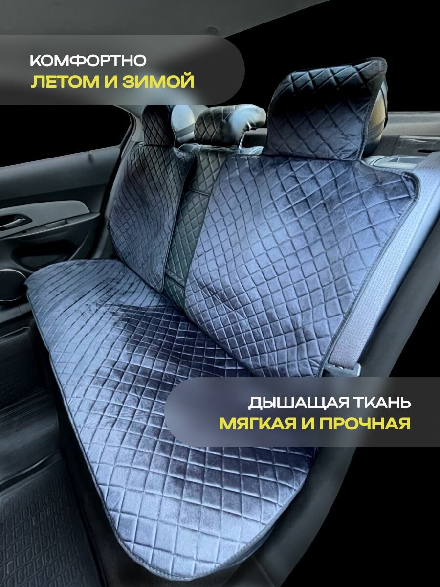 Накидки для Киа К900 (2018 - 2022) седан / Kia K900 на весь салон с подголовниками, ромб, велюр, серый