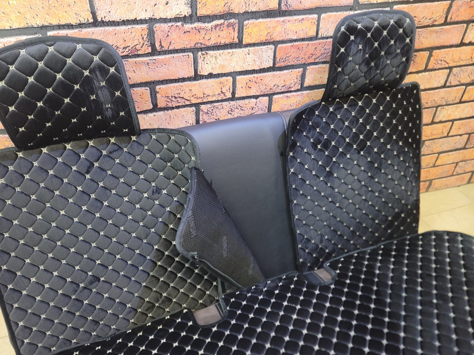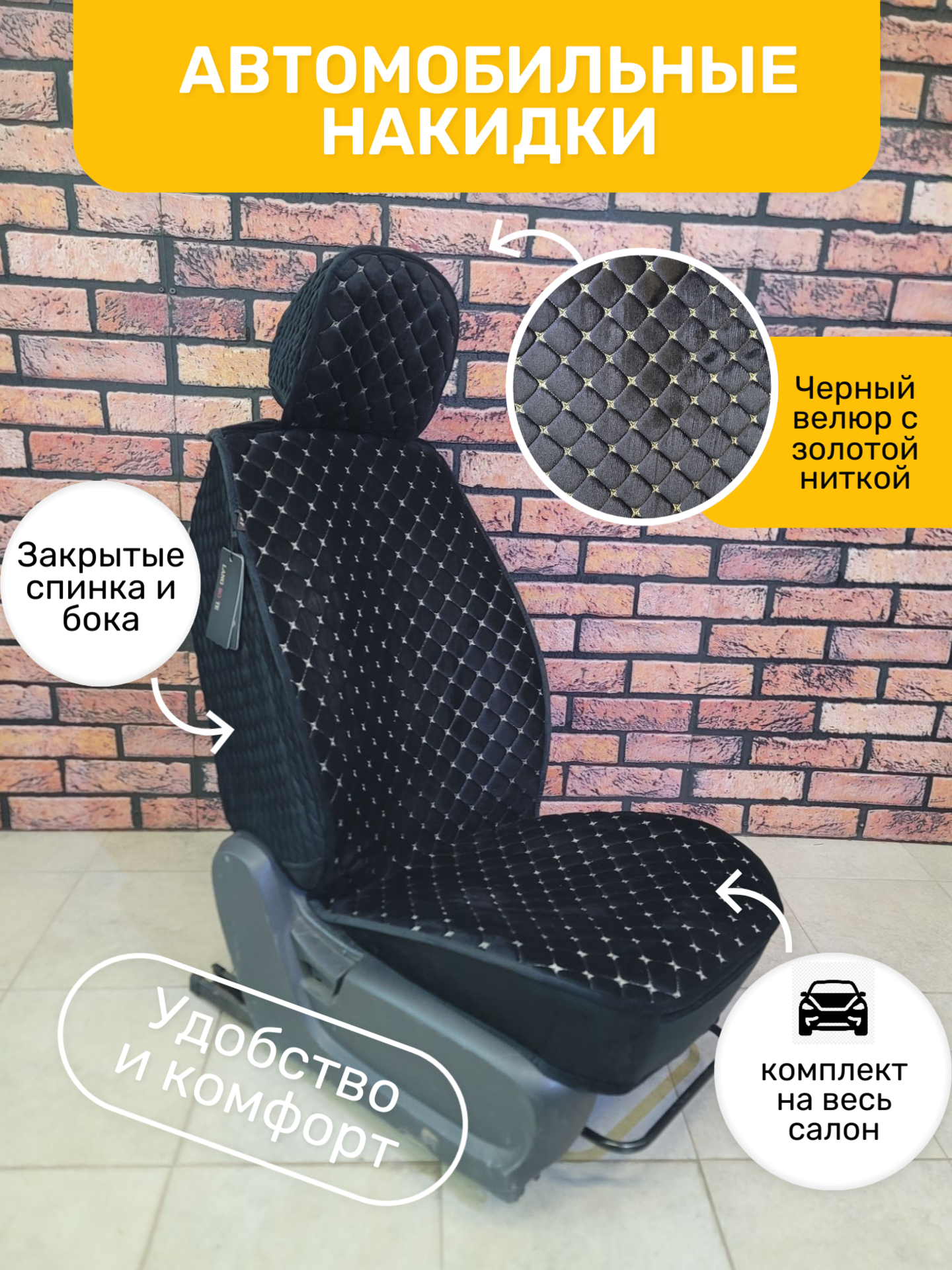 АвтоЛотос/Накидки на сиденья 2D, велюр, черные, с золотой строчкой, рисунок ромб, на весь салон интересное: