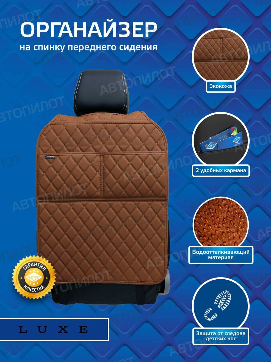 Накидка защитная на спинку автомобильного сиденья (органайзер) люкс на Citroen Berlingo III (2018-2023) / Ситроен Берлинго, Экокожа, Коричневый интересное: