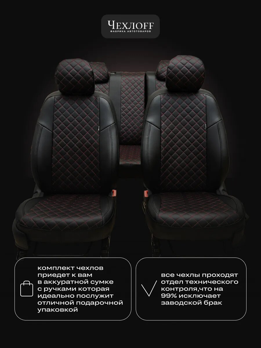 СохранитьЧехлы ЧехлоFF для Шевроле Ланос, экокожа, чёрно-красные, передние/задние, комплект интересное: