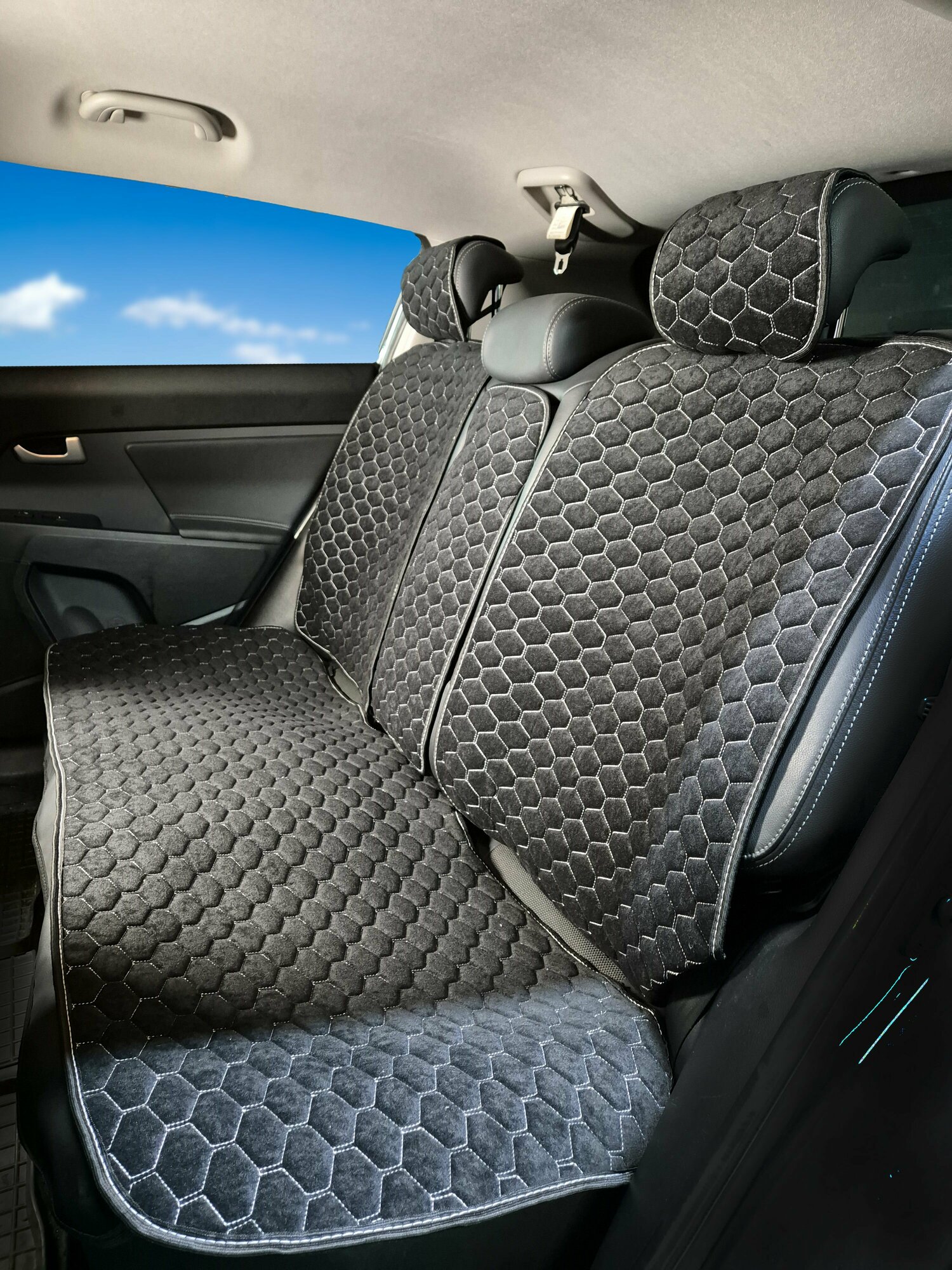 СохранитьНакидки для Опель Фронтера (2001 - 2004) внедорожник 5 дверей / Opel Frontera на задние сиденья G-Soty, Велюр, Черный с серой строчкой. интересное: