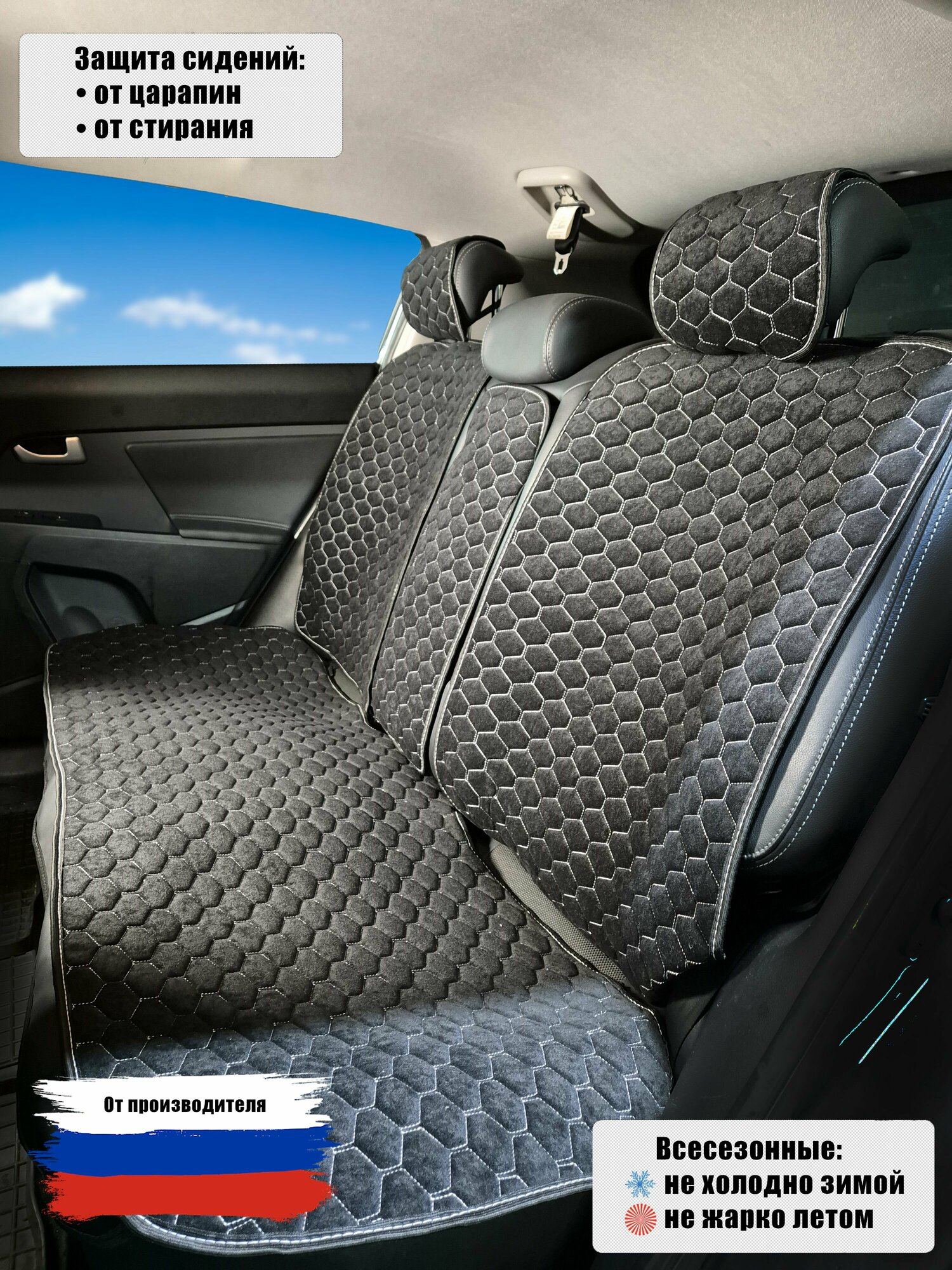 Накидки для Киа К900 (2018 - 2022) седан / Kia K900 на задние сиденья G-Soty, Велюр, Черный с серой строчкой. интересное: