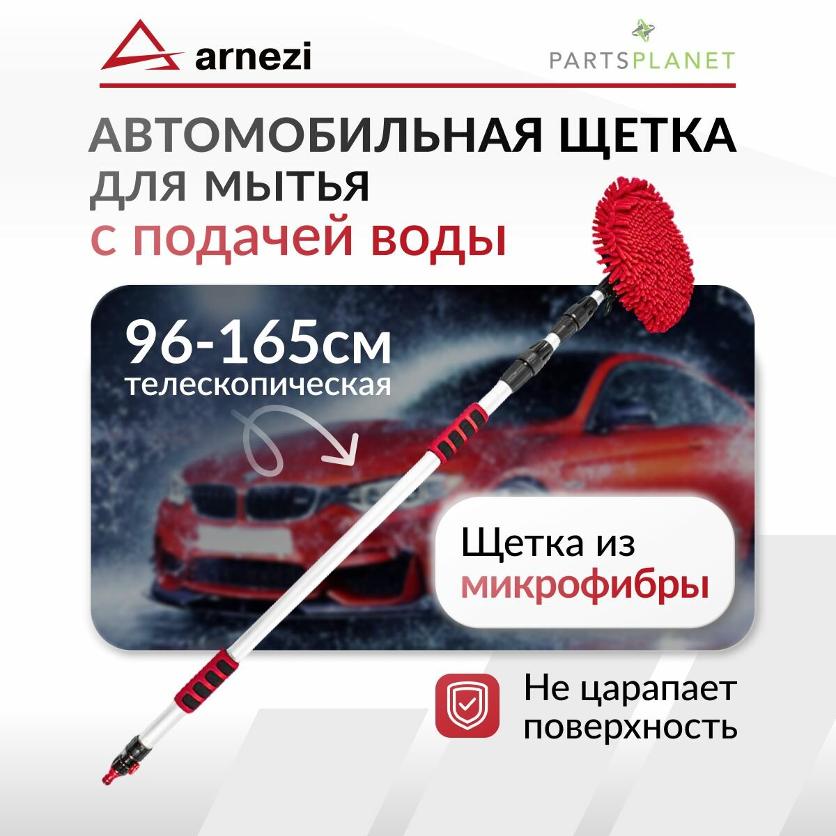 Щетка для мытья автомобиля телескопическая 96-165 см из микрофибры с подачей воды интересное: