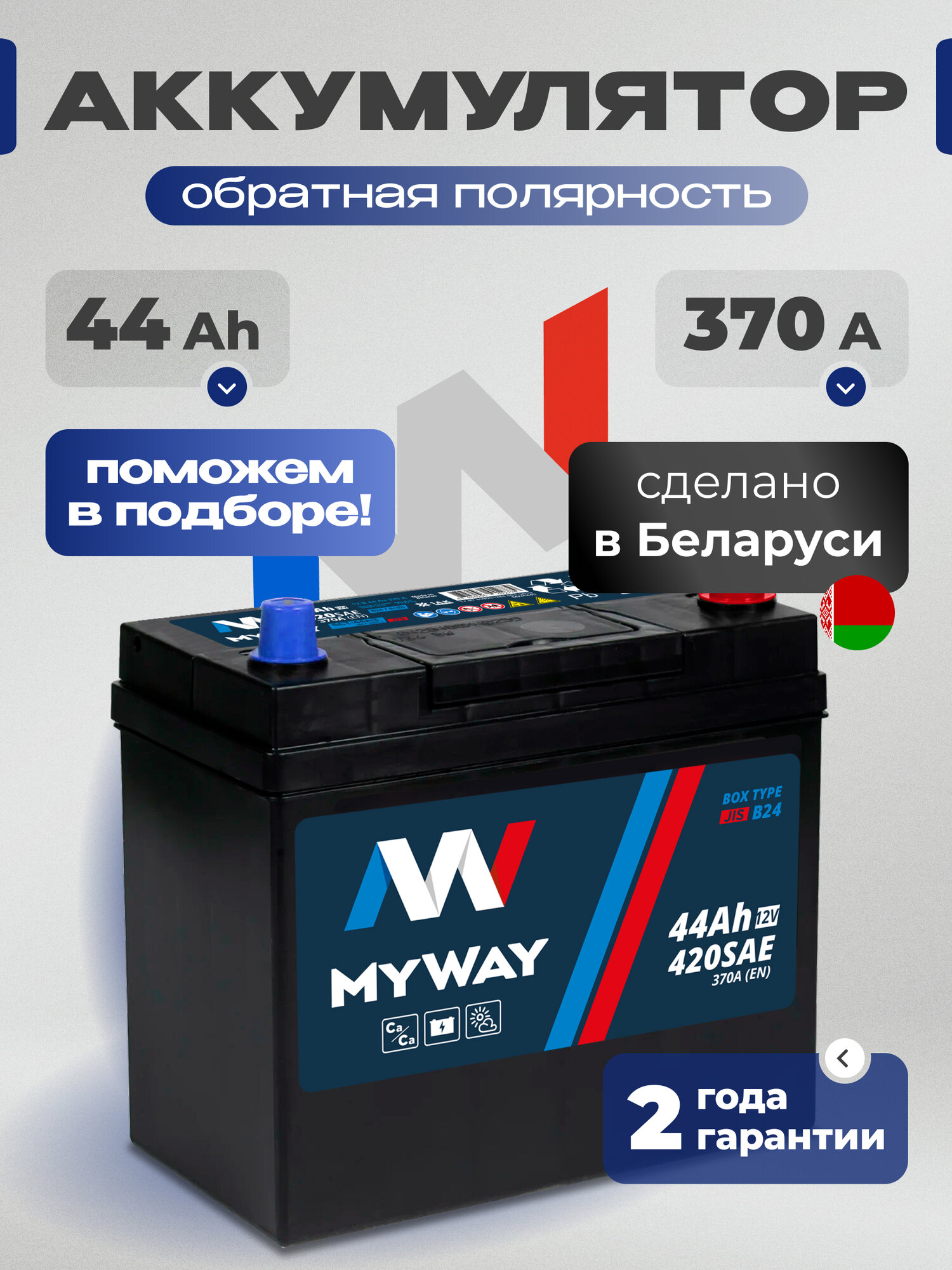 Аккумулятор автомобильный 44Ач 420А обратная полярность азия интересное: