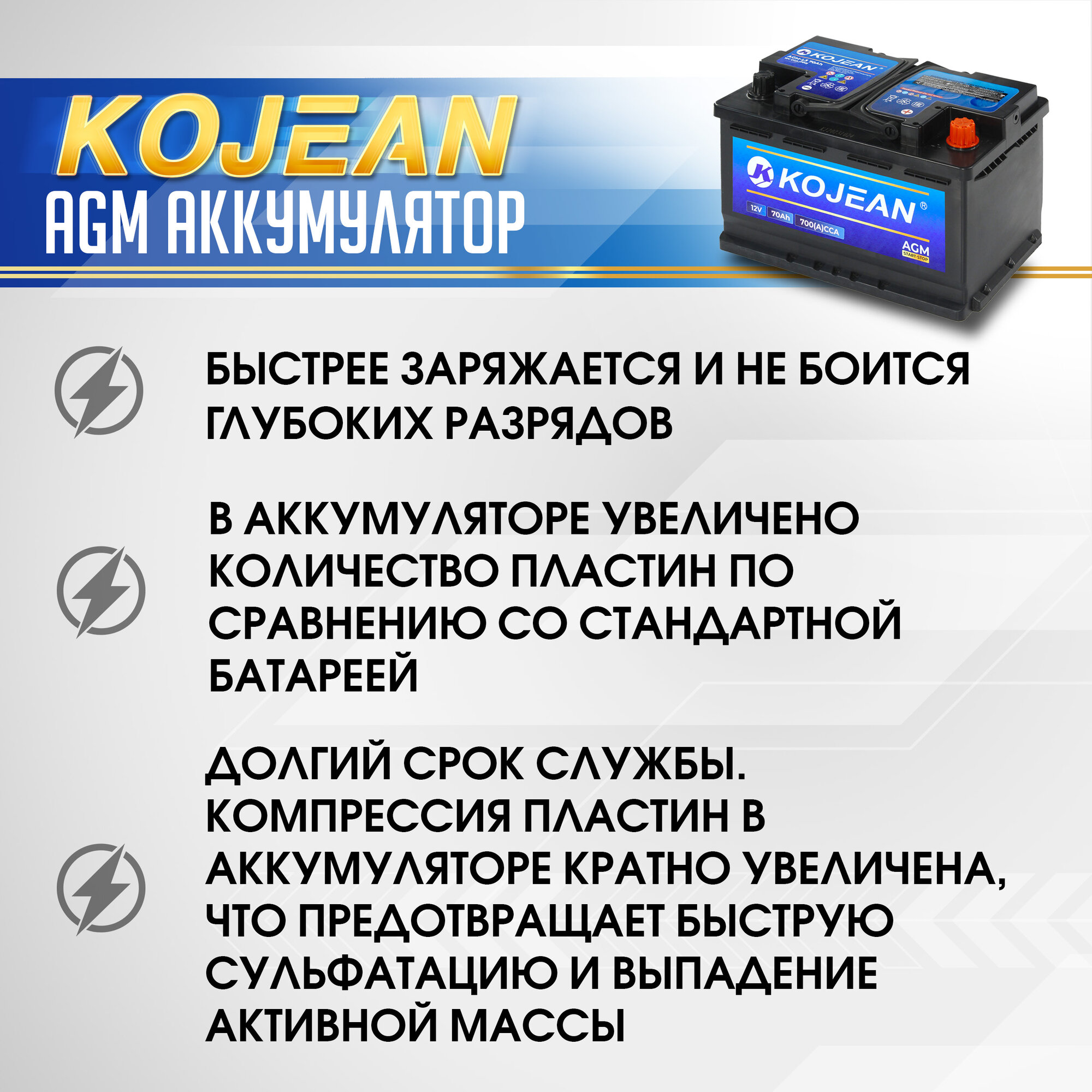 Аккумулятор AGM Kojean 12v 60 Ач 660 А обратная полярность корпус L2 242x175x190 интересное: