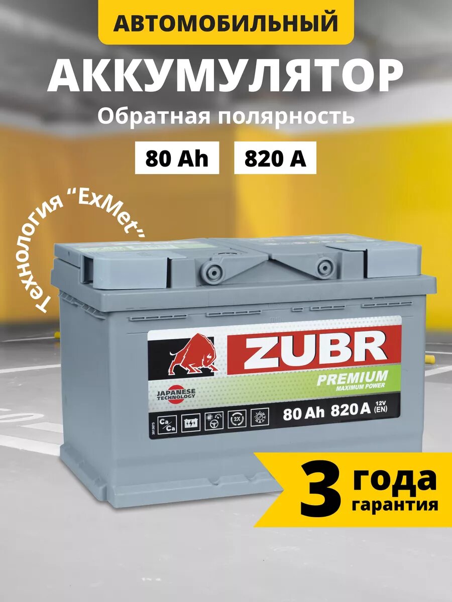 Аккумулятор автомобильный ZUBR PREMIUM 80.0 Ah 780 A ОП 278x175x190 интересное: