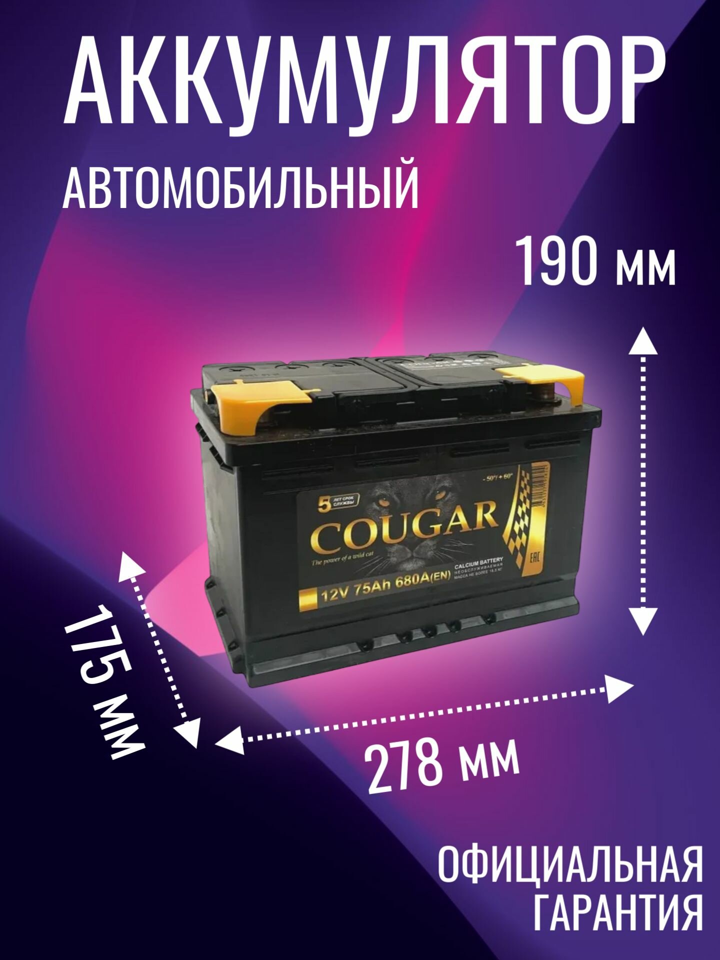 Аккумулятор автомобильный Cougar Power R+ 12В 75Ач 680А, Обратная (-/+) полярность интересное: