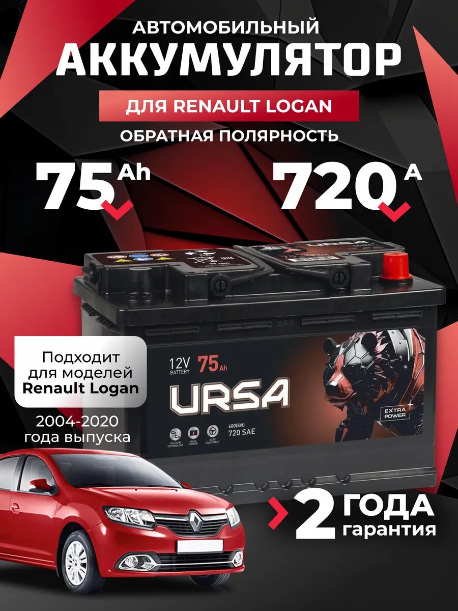 Аккумулятор автомобильный 75 Ач 720 A для Renault Logan интересное: