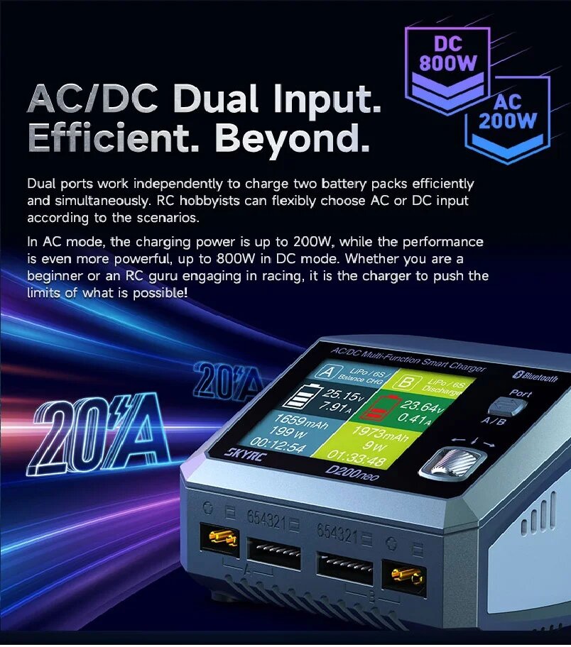 Ниже Вы можете прочитать отзывы на Универсальное зарядное устройство SkyRC D200neo (двухканальное, AC - 200Вт, DC - 2х400Вт), ознакомится с подробными характеристиками, посмотреть интересные обзоры и фотографии на Универсальное зарядное устройство SkyRC D200neo (двухканальное, AC - 200Вт, DC - 2х400Вт).