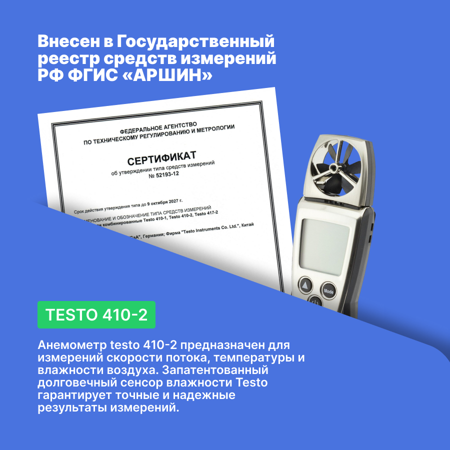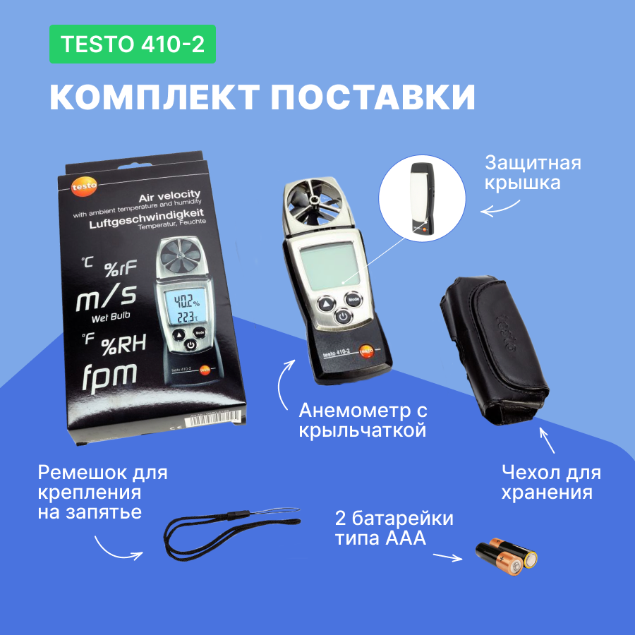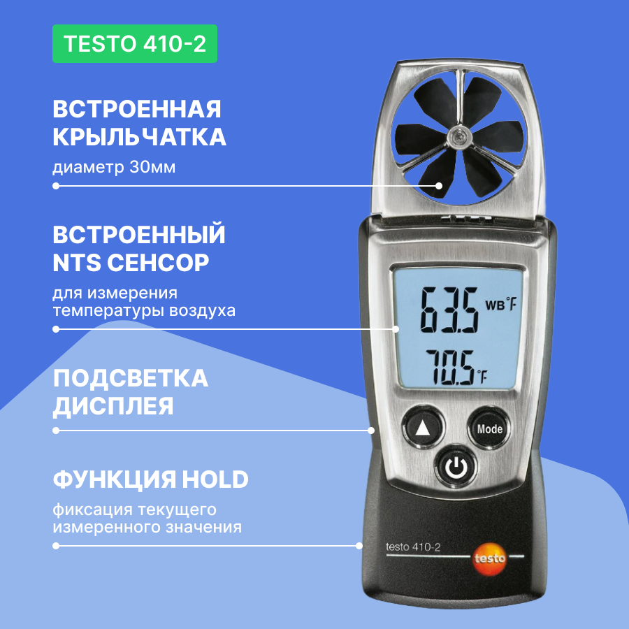 Анемометр testo 410-2 с крыльчаткой и сенсором влажности Testo интересное: