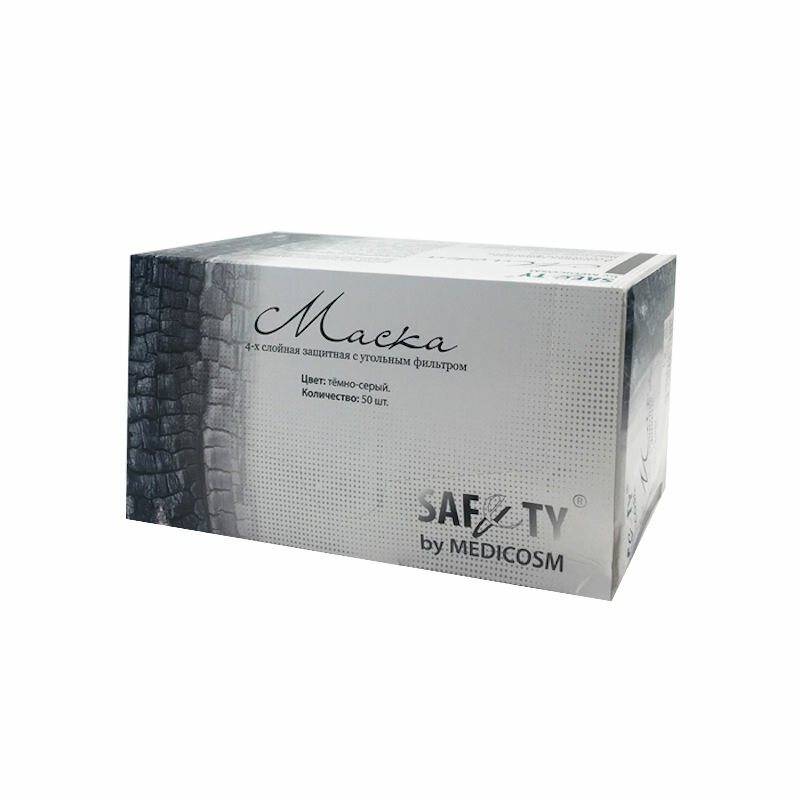 Маски защитные четырехслойные Safety с угольным фильтром (50 шт, Темно-серый) интересное: