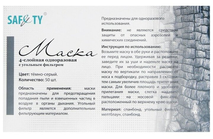 Маска одноразовая 4-х слойная с угольным фильтром, 50 штук, темно-серые интересное: