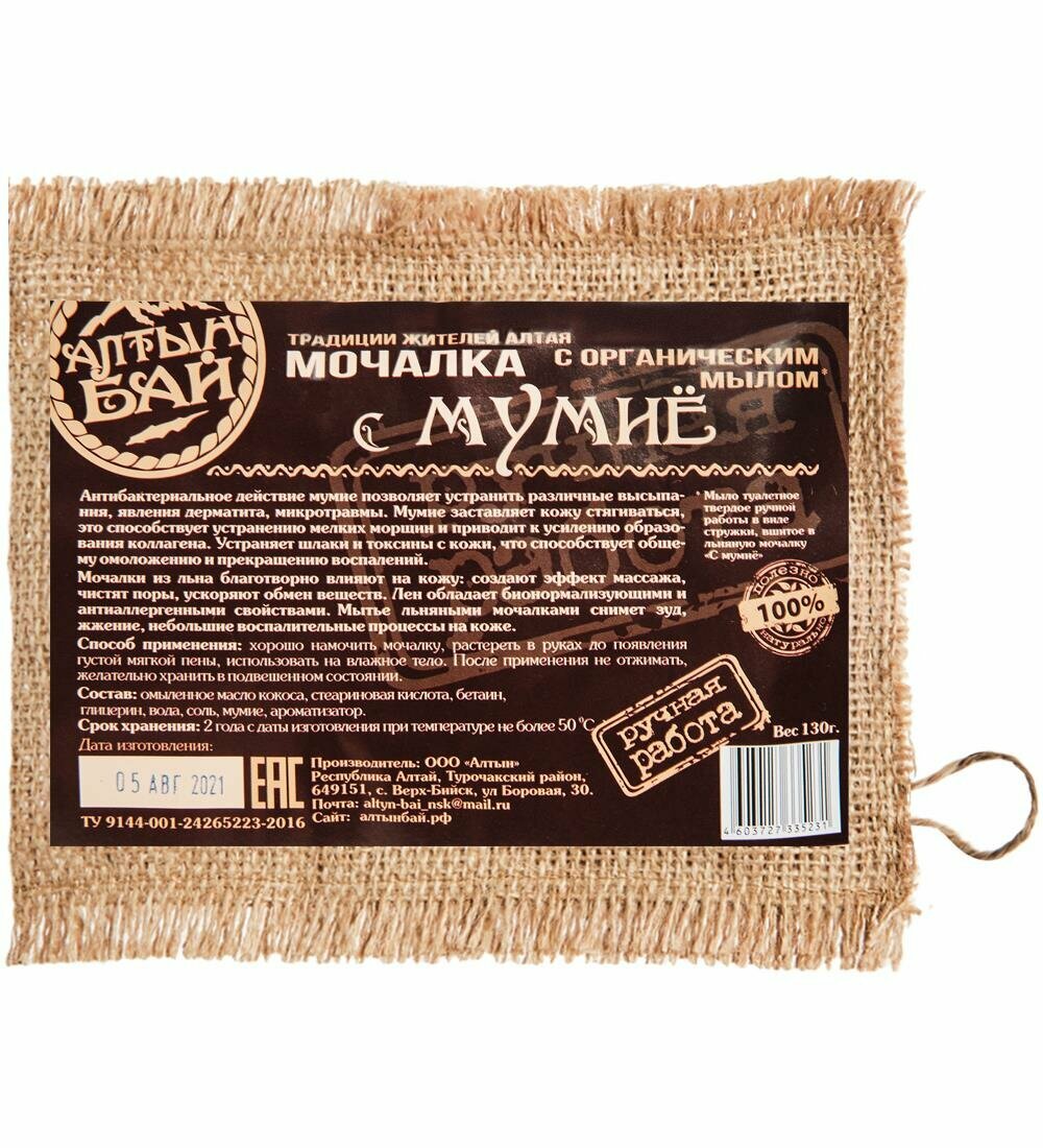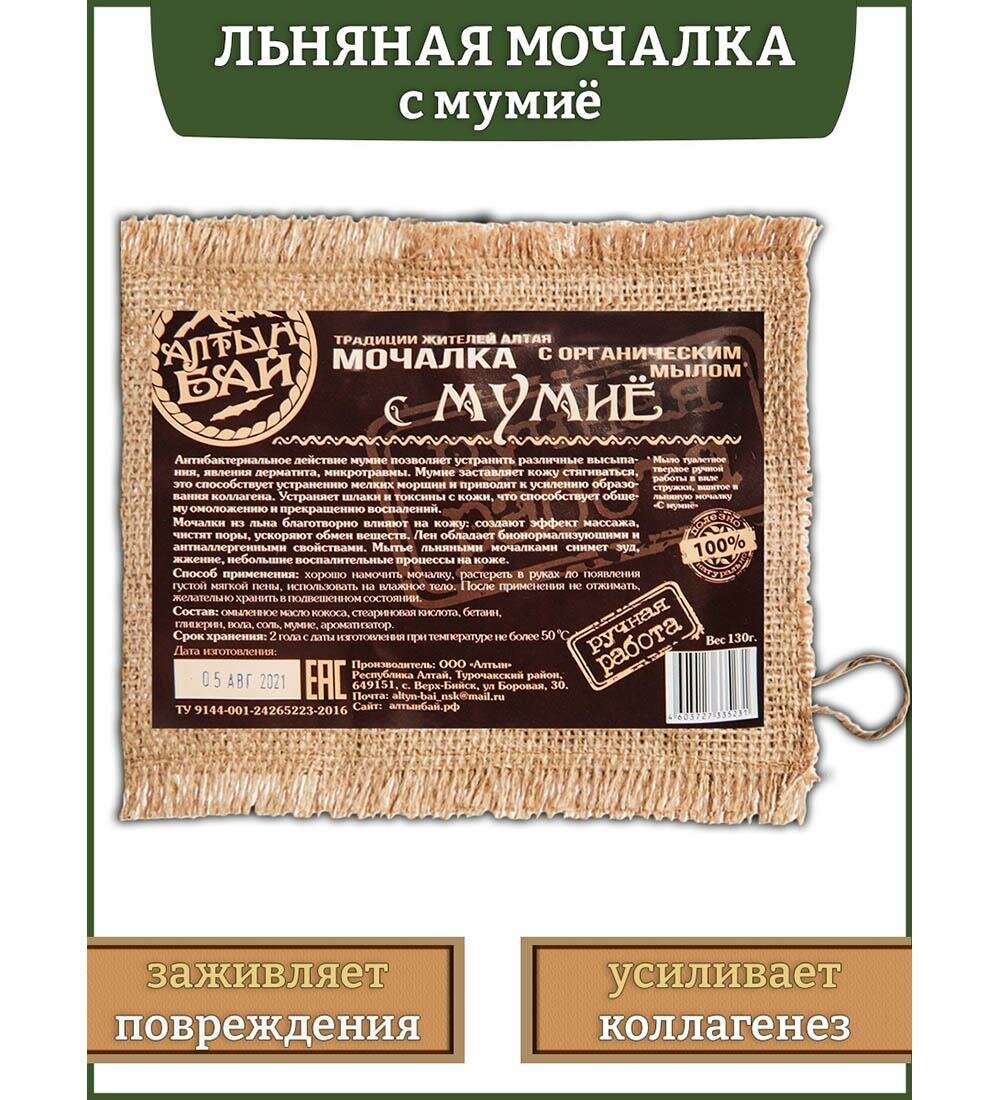 СохранитьМочалка льняная с органическим мылом С мумиё, 130 г АлтынБай интересное: