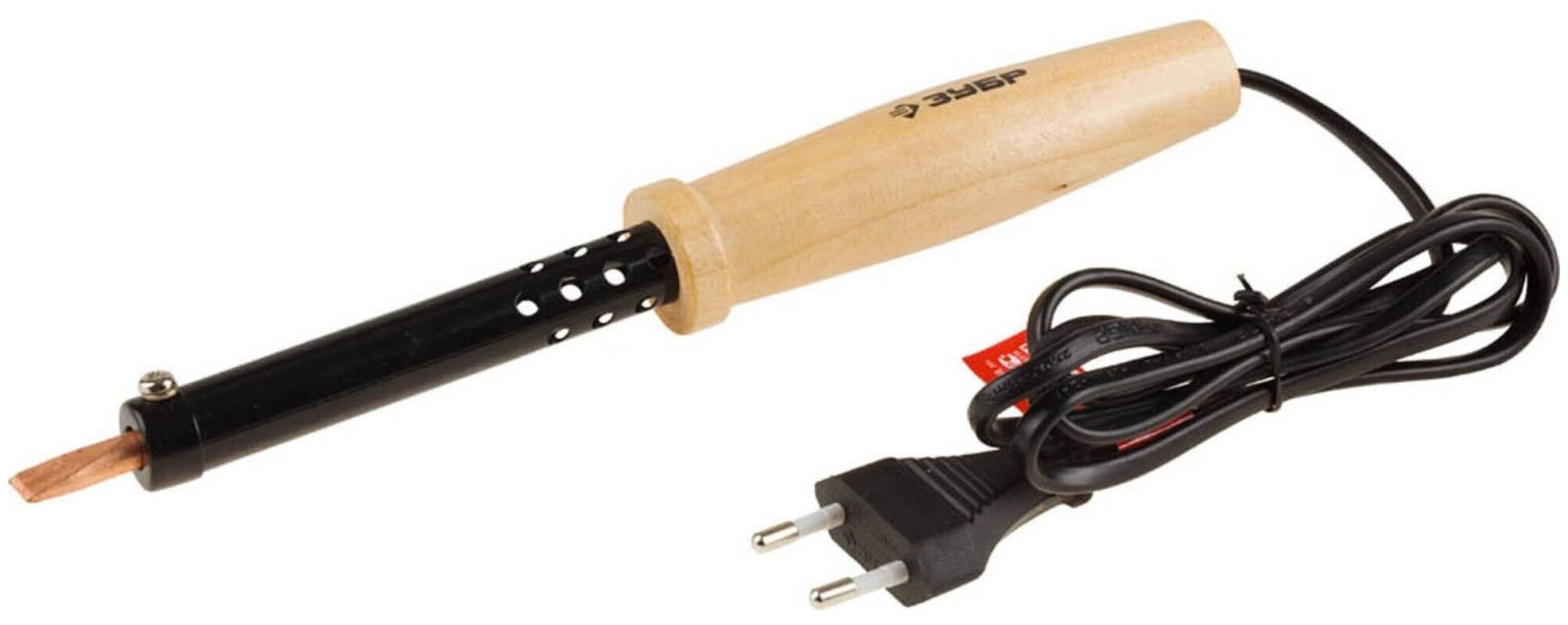 Электропаяльник ЗУБР Мастер с деревянной рукояткой и долговечным жалом, форма клин, 80Вт 55405-80_z01