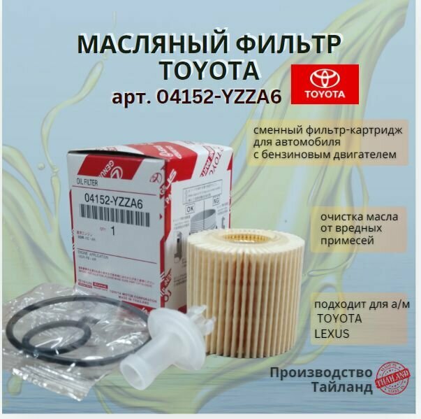 Масляный фильтр TOYOTA арт. 04152-YZZA6, 1 штука. интересное: