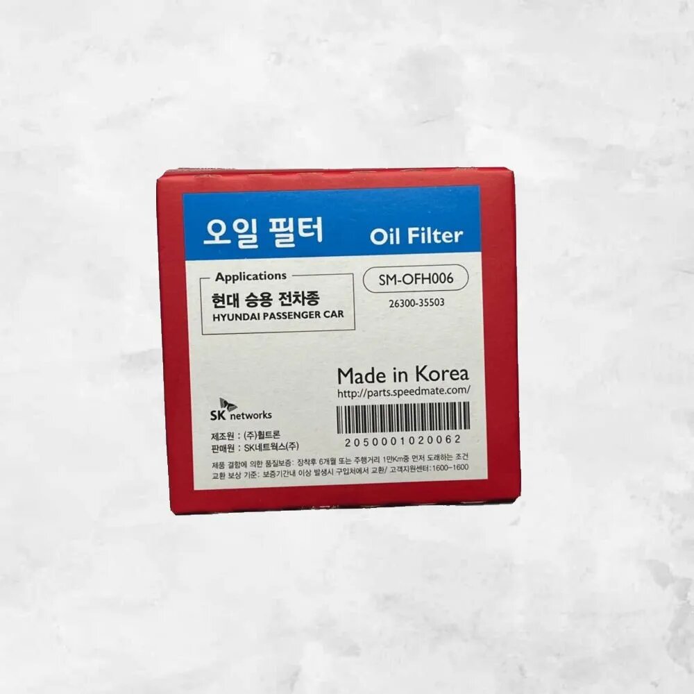 Фильтр масляный SpeedMate SMOFH006, для Киа, Хендай Акцент, Солярис, i30, i40, Рио, Соната, Элантра, Гетц, Сид интересное: