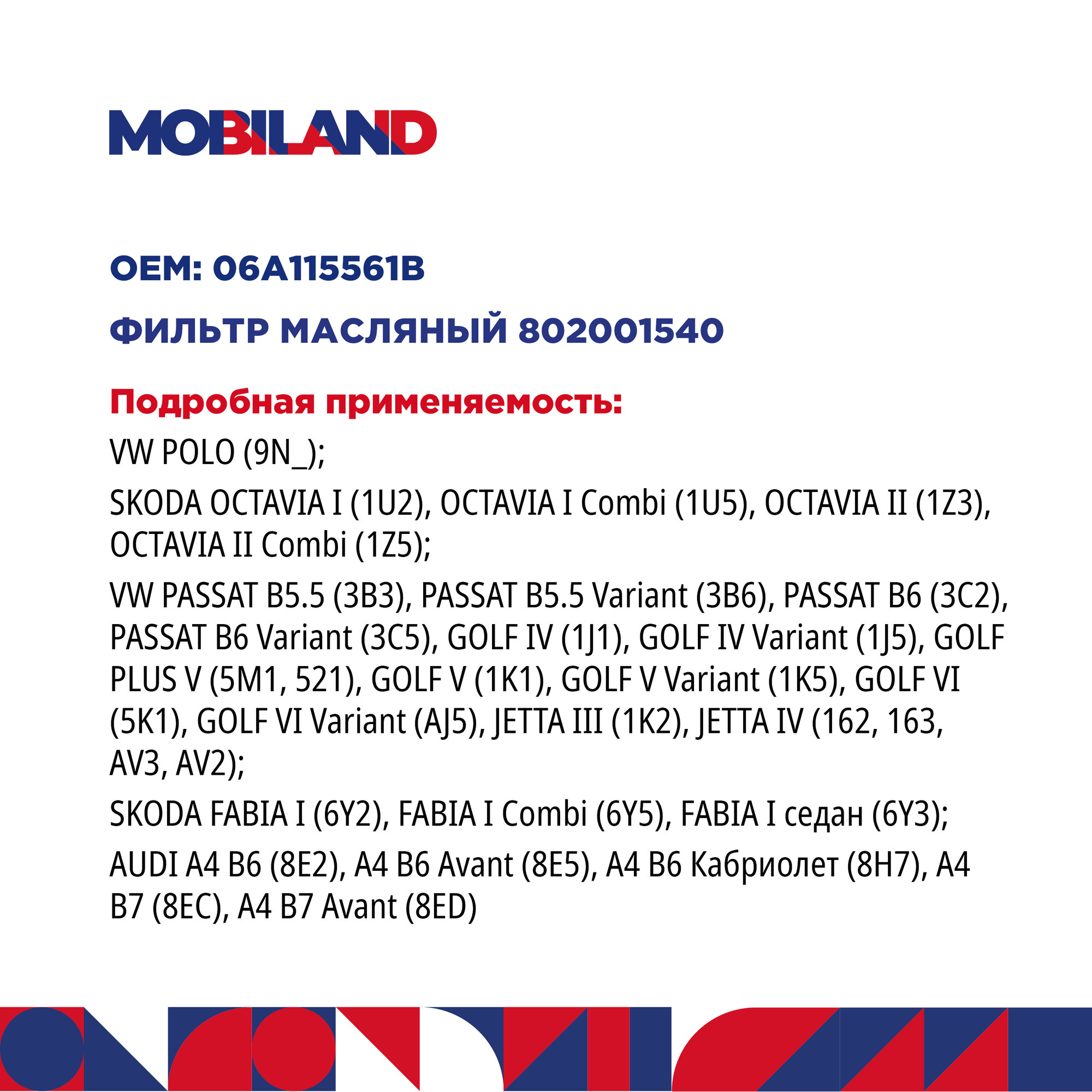 Фильтр масляный для а/м SKODA OCTAVIA II (1Z3); VW POLO (9N_), VW JETTA IV (162, 163, AV3, AV2); AUDI A4 B7 (8EC) интересное: