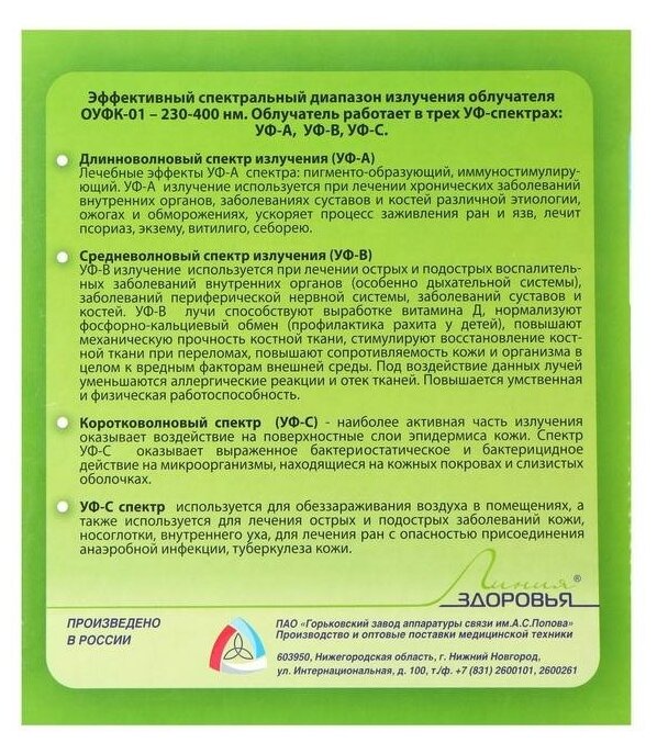 Ниже Вы можете прочитать отзывы на Ультрафиолетовый кварцевый облучатель ОУФК-01, ознакомится с подробными характеристиками, посмотреть интересные обзоры и фотографии на Ультрафиолетовый кварцевый облучатель ОУФК-01.