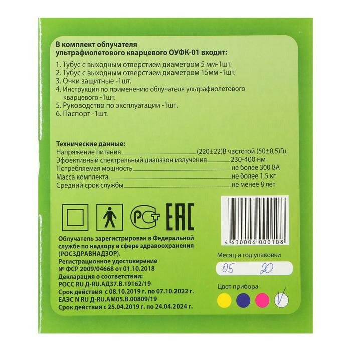 Облучатель ОУФК-01 ультрафиолетовый кварцевый, 1 шт