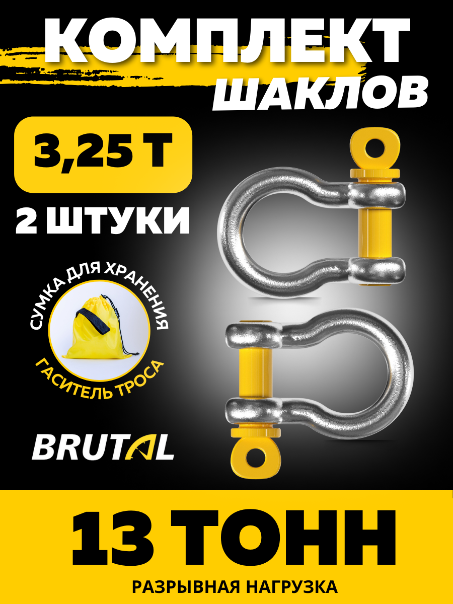 Купить Шаклы автомобильные для буксировки 3.25 т / 13 т комплект 2 штуки с мешком BRUTAL