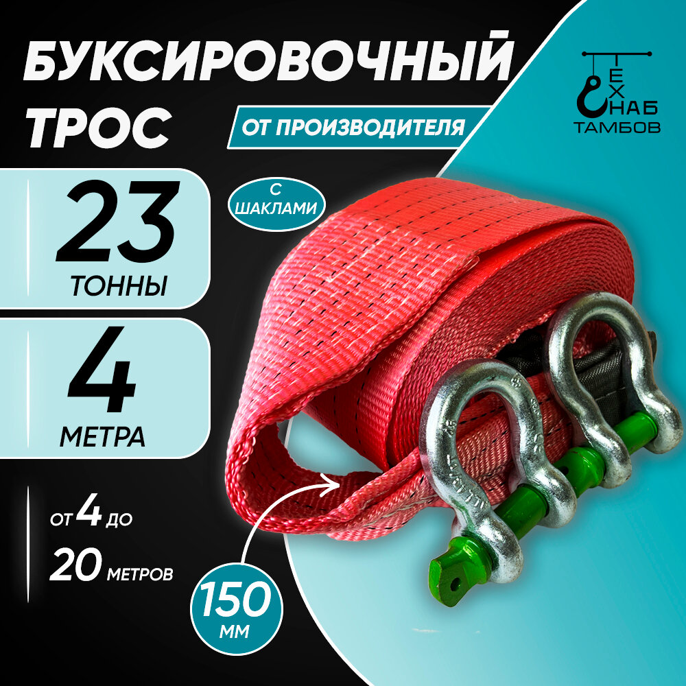 Трос буксировочный автомобильный ТамбовТехСнаб 23т 4м с шаклами интересное: