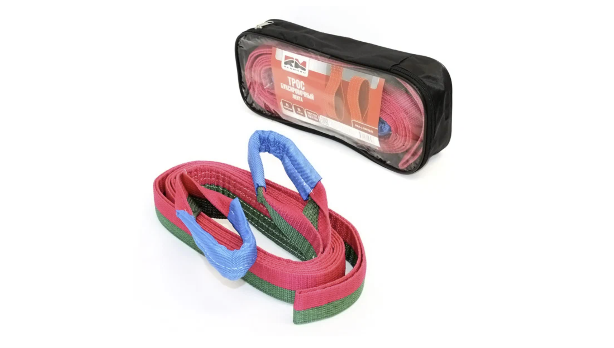 Трос буксировочный лента RedMark, длина 5 м, грузоподъемность 5 т, петля/петля, красный цвет интересное: