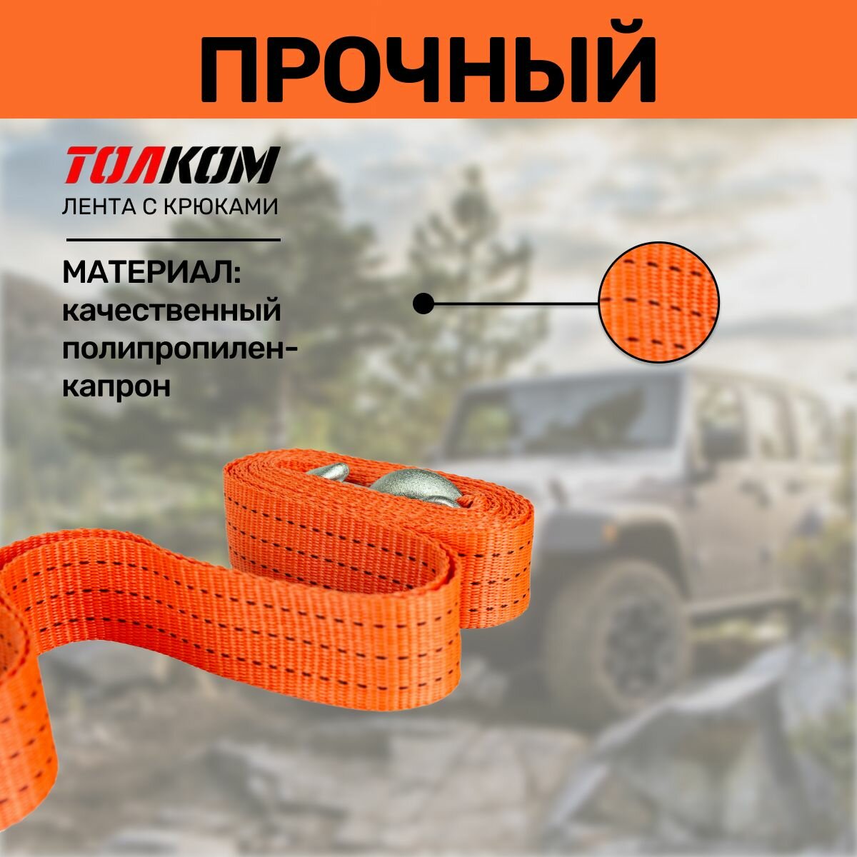 Трос буксировочный лента 5 т, 2 крюка, в блистере (стропа усиленная)